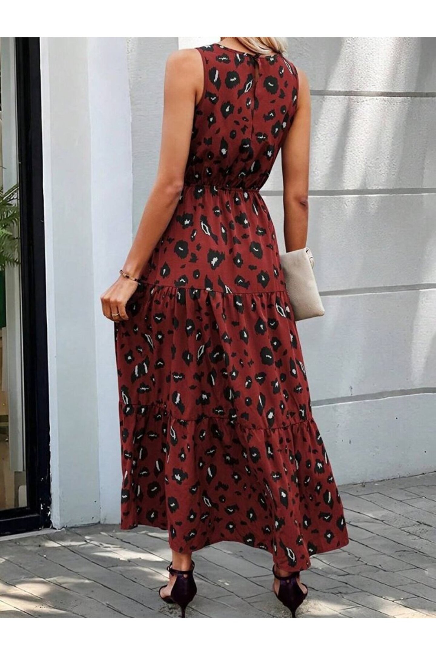 HanZone EQURİ Kadın Kolsuz Bisiklet Yaka Beli Lastikli Desenli Süprem Elbise