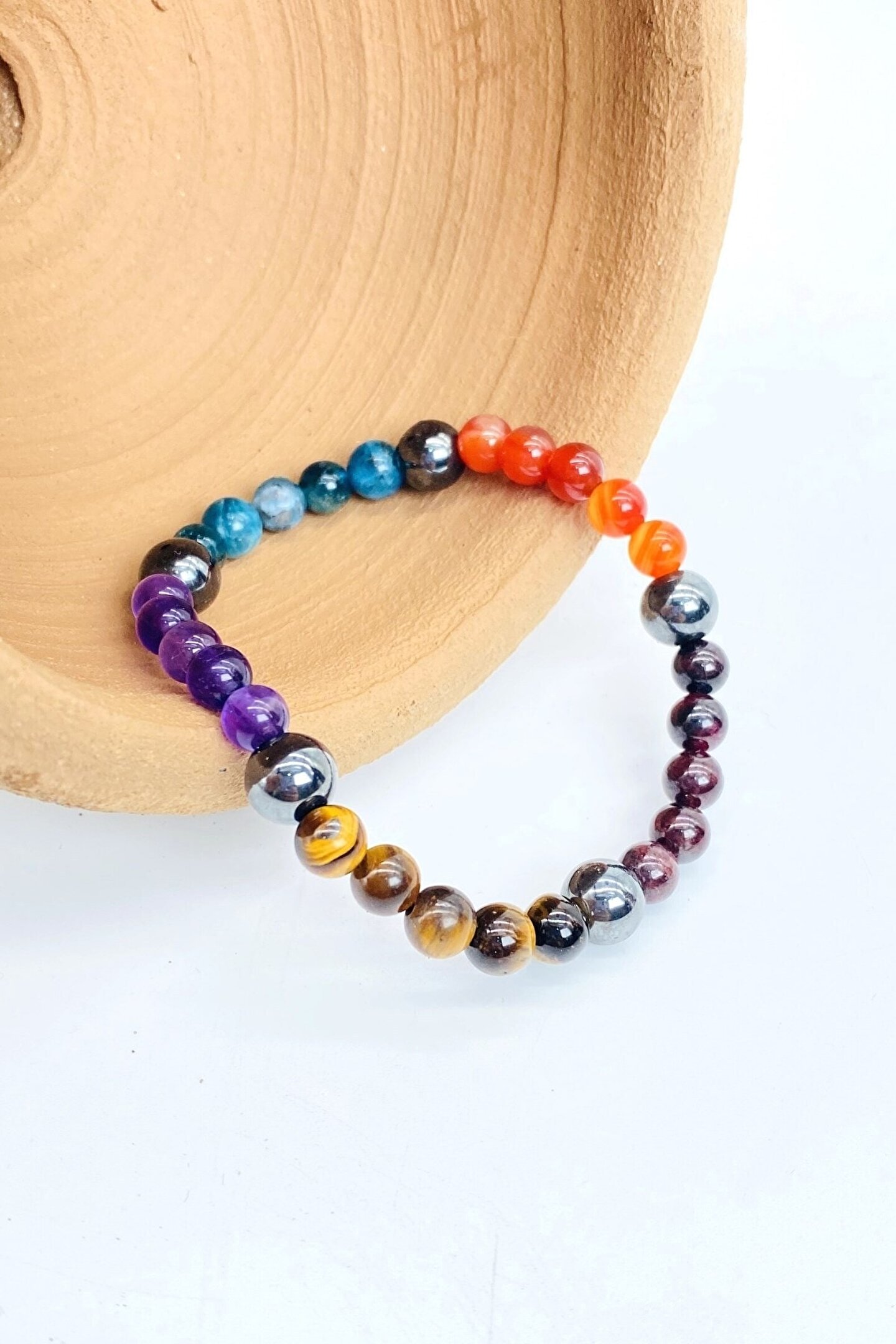 Haremi Apatit, Ametist, Kaplan Gözü, Lal Granat, Madagaskar Akik, Hematit Doğal Taş Bileklik 6
