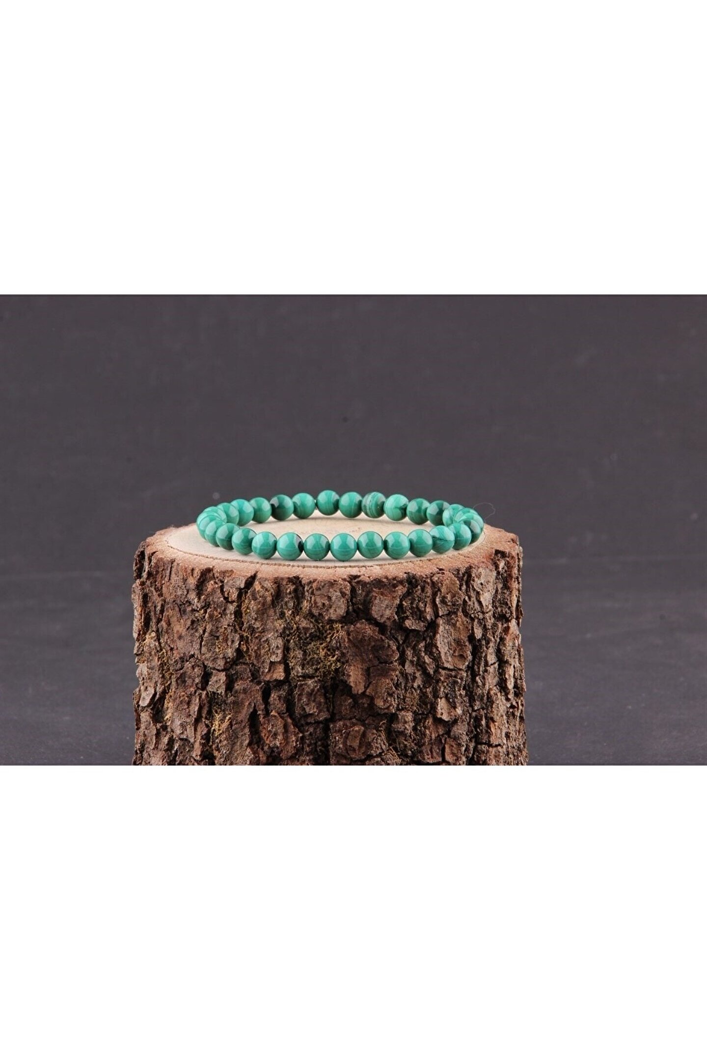 Doğal malahit taşı kullanılarak üretilmiş, şıklığı ve doğallığı bir arada sunan bileklik; Gençlerin enerjisine ve tarzına hitap eden tasarımıyla dikkat çeken bu bileklik, günlük kullanım için idealdir; Doğal taş materyali sayesinde her bilek boyutuna uyum sağlar ve konforlu bir kullanım sunar;