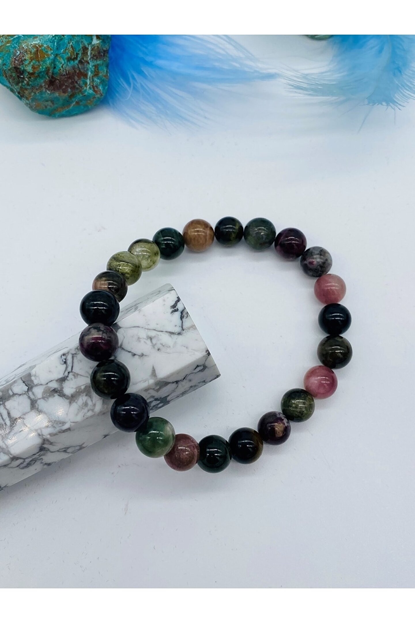 Doğal turmalin taşı ile tasarlanmış, şıklığı ve zarafeti bir arada sunan bileklik; Gençlerin enerjisine ve tarzına hitap eden, modern ve trend bir aksesuar; Doğal taş kullanımıyla her parça benzersiz ve özgün bir görünüm kazandırır;
