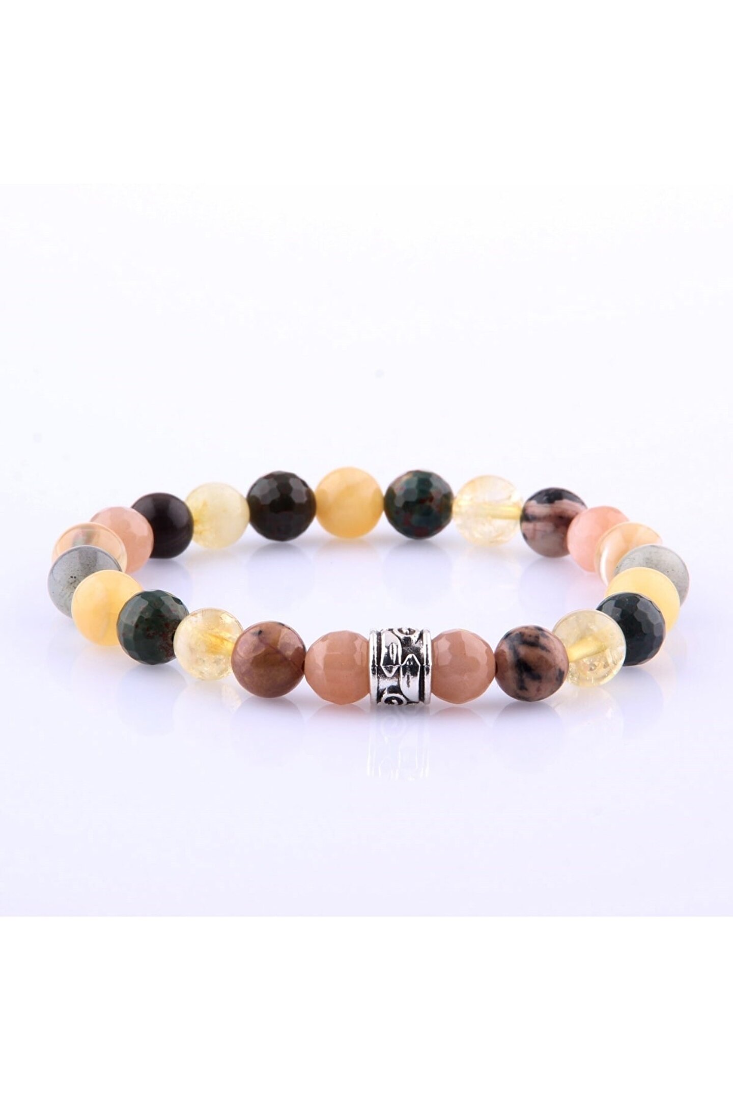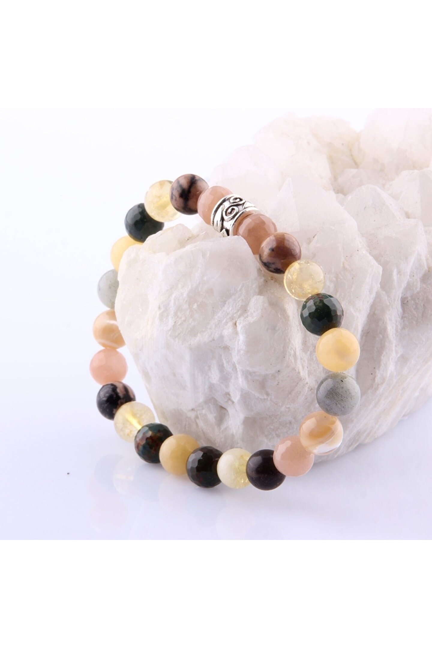 Haremi Güneş Taşı Rodonit Sitrin Kan Taşı Sedef Labrodorit 8 mm Doğal Taş Bileklik