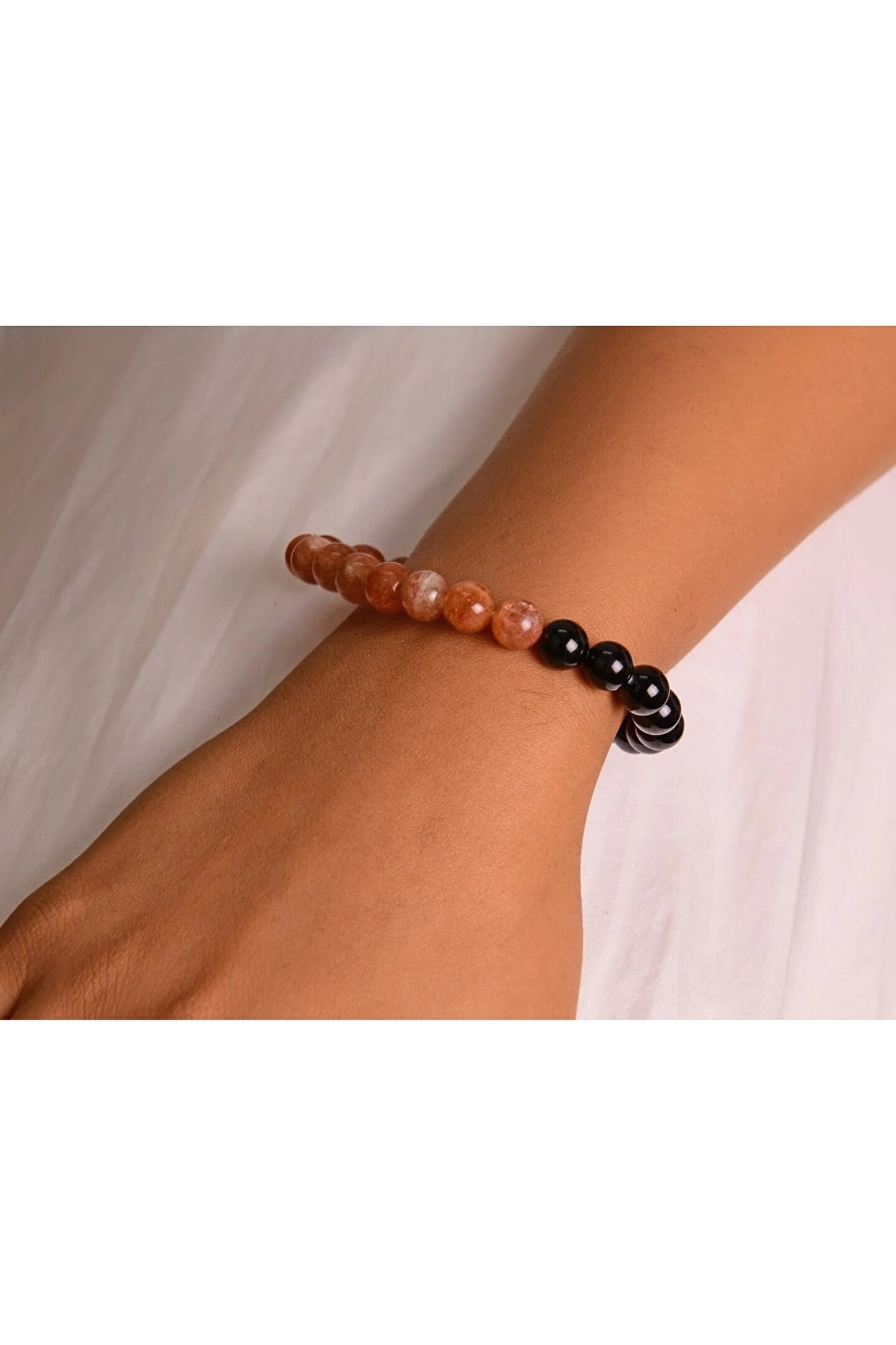 Haremi Güneş Taşı & Turmalin Doğal Taş Bileklik 8mm