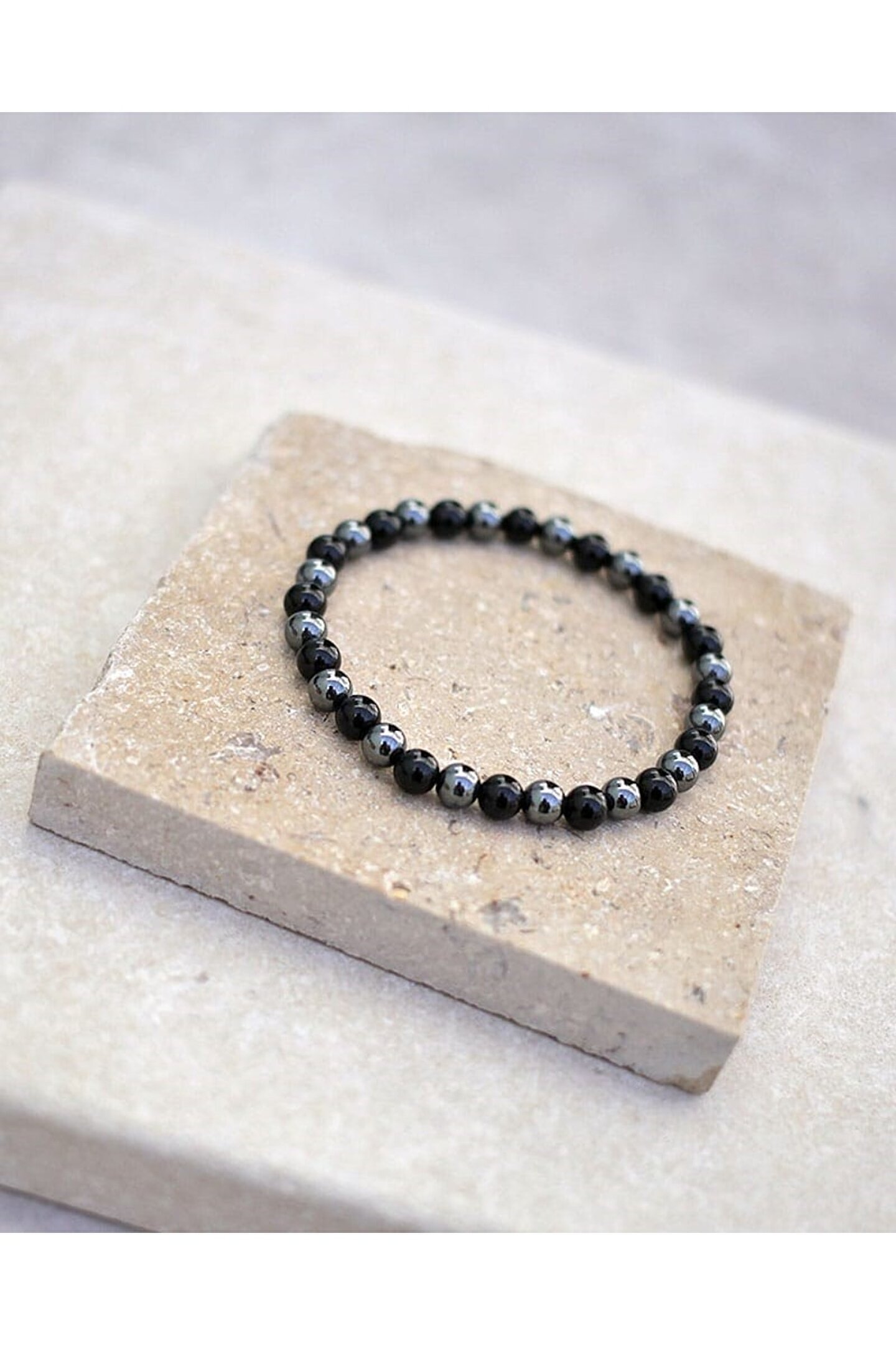 Haremi Hematit - Karlı Obsidyen Doğal Taş Bileklik 8 Mm