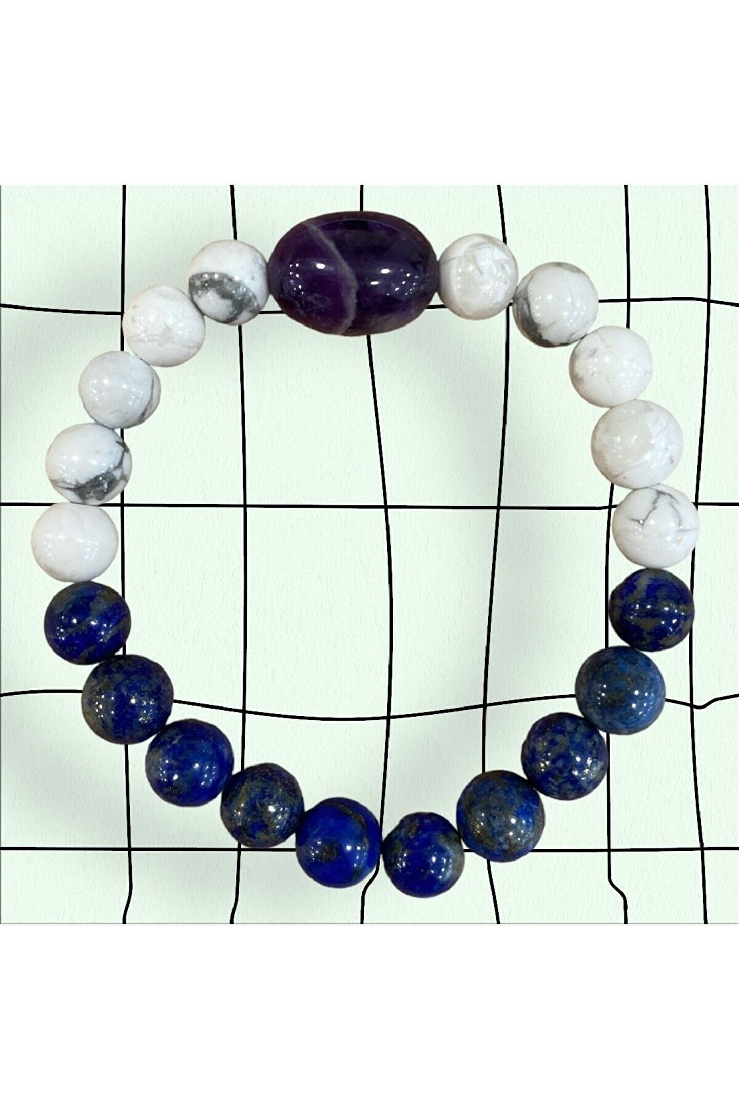 Doğal taş bileklik, şıklığınızı tamamlayacak zarif bir aksesuardır; Lapis, havlit ve ametist gibi doğal taşların birleşimiyle üretilmiştir, bu da her bileklik benzersiz bir dokunuş sunar; 8 mm kalınlığındaki bu bileklik, hem günlük kullanım hem de özel günler için idealdir; Doğal taş materyali sayesinde her bileklik, doğanın saf güzelliğini parmaklarınıza taşır;