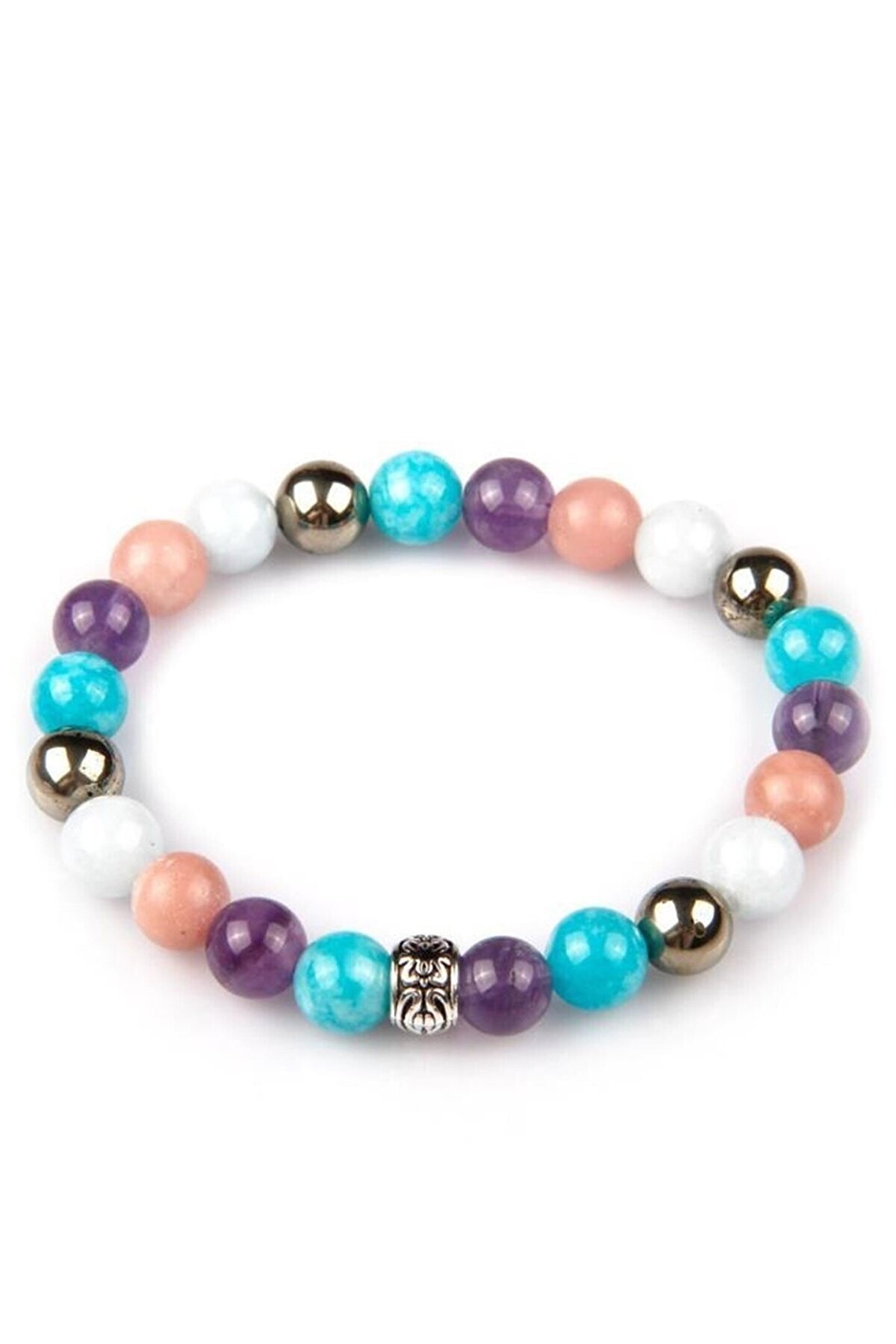 Haremi Pirit – Ametist – Akuamarin- Amazonit – Mangona Kalsit Doğal Taş Bileklik 8 mm Küre Kesim