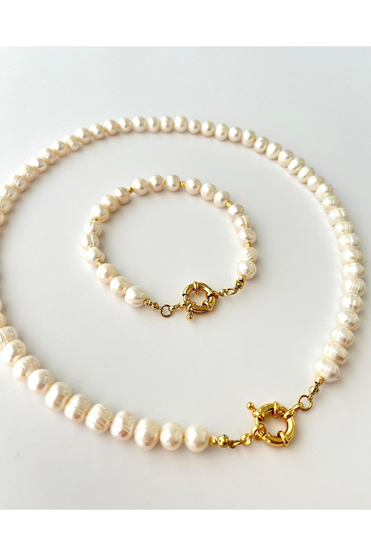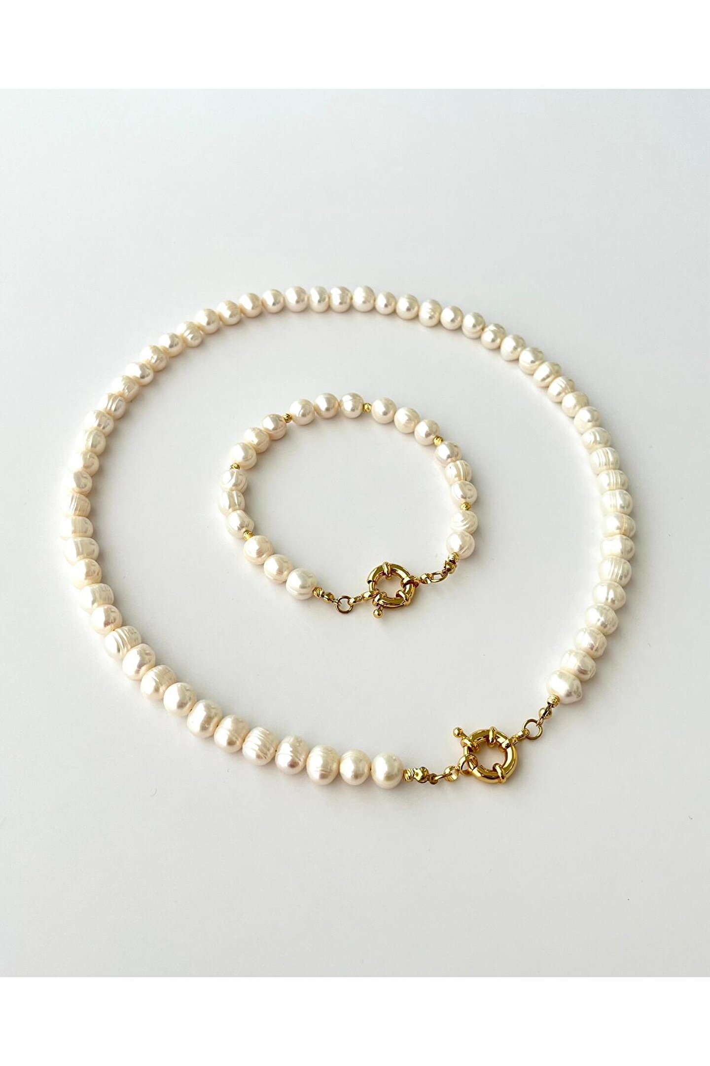 Harmonia Gerçek İnci Kolye Seti - El Yapımı - Altın&Charm Takılabilen Bu özel set, el emeğiyle tasarlanmış, zarafeti ve uyumu bir araya getiren eşsiz bir takı koleksiyonudur.; Kolye ve bileklik, doğal incilerin sofistike ışıltısını ve çelik gemici düğümü detayının sağlamlığını bir arada sunar.; Taşlar ve Enerji: Kolye ve bileklik, 8-9 mm boyutundaki gerçek incilerden oluşur.; İnci, saflığı, zarafeti ve doğal ışıltısıyla her kullanımda benzersiz bir güzellik sunar.; Altın&Charm takılabilen bileklik, kişisel dokunuşlar eklemenize olanak tanır.; Kolye uzunluğu 50 cm, bileklik uzunluğu 20 cm’dir.; Materyal ve Dayanıklılık: Gemici düğümü detayı Kaliteli altın kaplama malzemedir, hem estetik hem de dayanıklılık sağlar.; Boyut ve Özelleştirme: Kolye ve bileklik, isteğe bağlı olarak kişiye özel ölçülerde hazırlanabilir.; Sipariş notu aracılığıyla özel ölçü taleplerinizi iletebilirsiniz.; Kullanım: Günlük kombinlerinize sofistike bir dokunuş katarken, özel davetlerde de zarif bir tamamlayıcı olarak öne çıkar.; Charm ekleyerek bilekliğinizi kişiselleştirebilirsiniz.; Bakım ve Özen: Ürünlerin uzun ömürlü kalması için parfüm ve kimyasal ürünlerle temasından kaçınınız.; Taşların ve incilerin doğal yapısı nedeniyle ürünler arasında hafif farklılıklar oluşabilir; El Yapımı, Harmonia Gerçek İnci Kolye Seti - El Yapımı - Altın&Charm Takılabilen kendiniz veya sevdikleriniz için zamansız, uyumlu ve sofistike bir hediye seçeneğidir.