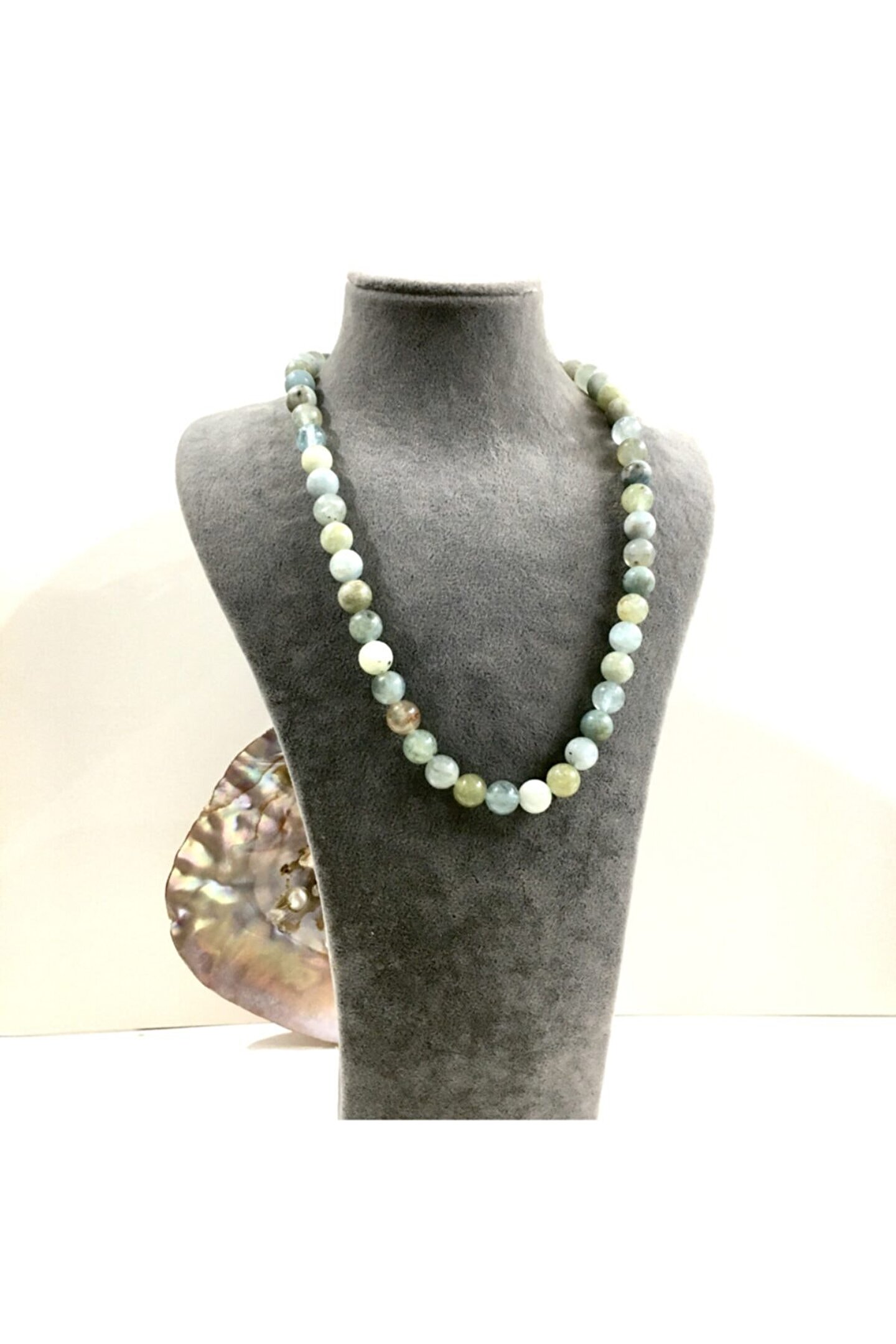 Doğal akvamarin taşı, kolyenin şıklığını ve zarafetini artırır; Gümüş materyal kullanımı, hem dayanıklılığı hem de estetik görünümü garanti eder; 8mm boyutundaki akvamarin taşı, göz alıcı bir parlaklık sunar ve her türlü kıyafetle uyum sağlar; Gümüş klips tasarımı, kolyenin kolayca takılmasını ve çıkarılmasını mümkün kılar;