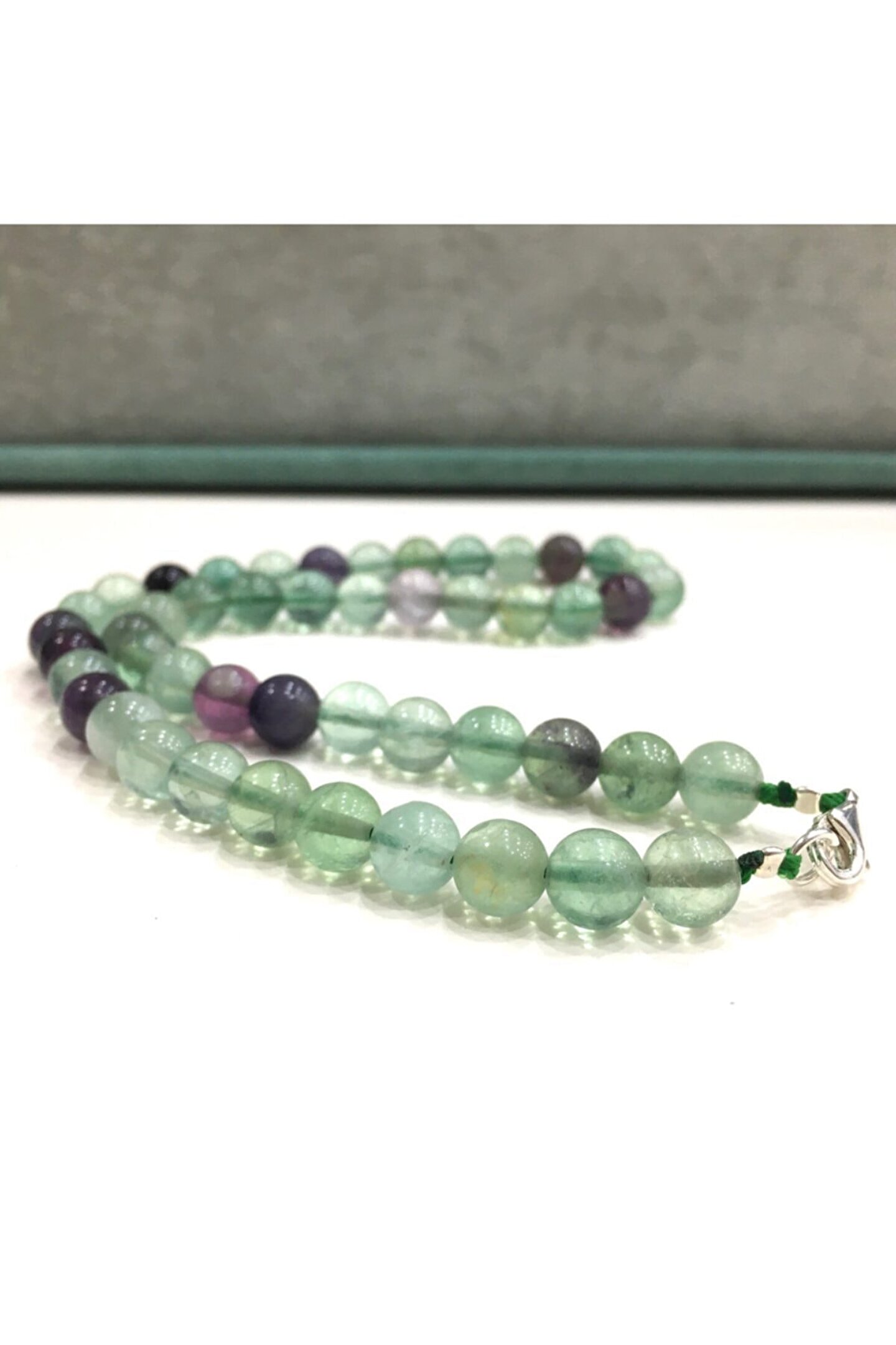 Gümüş malzeme kullanımı, hem şıklığı hem de dayanıklılığı bir arada sunar; Doğal taş detayı, her kolyeye benzersiz ve otantik bir görünüm kazandırır; Florit taşı, renk değiştirme özelliği ile ışığı farklı açılardan yansıtarak göz alıcı bir etki yaratır; Gümüş klips tasarımı, kolyenin kolayca takılmasını ve çıkarılmasını sağlar;
