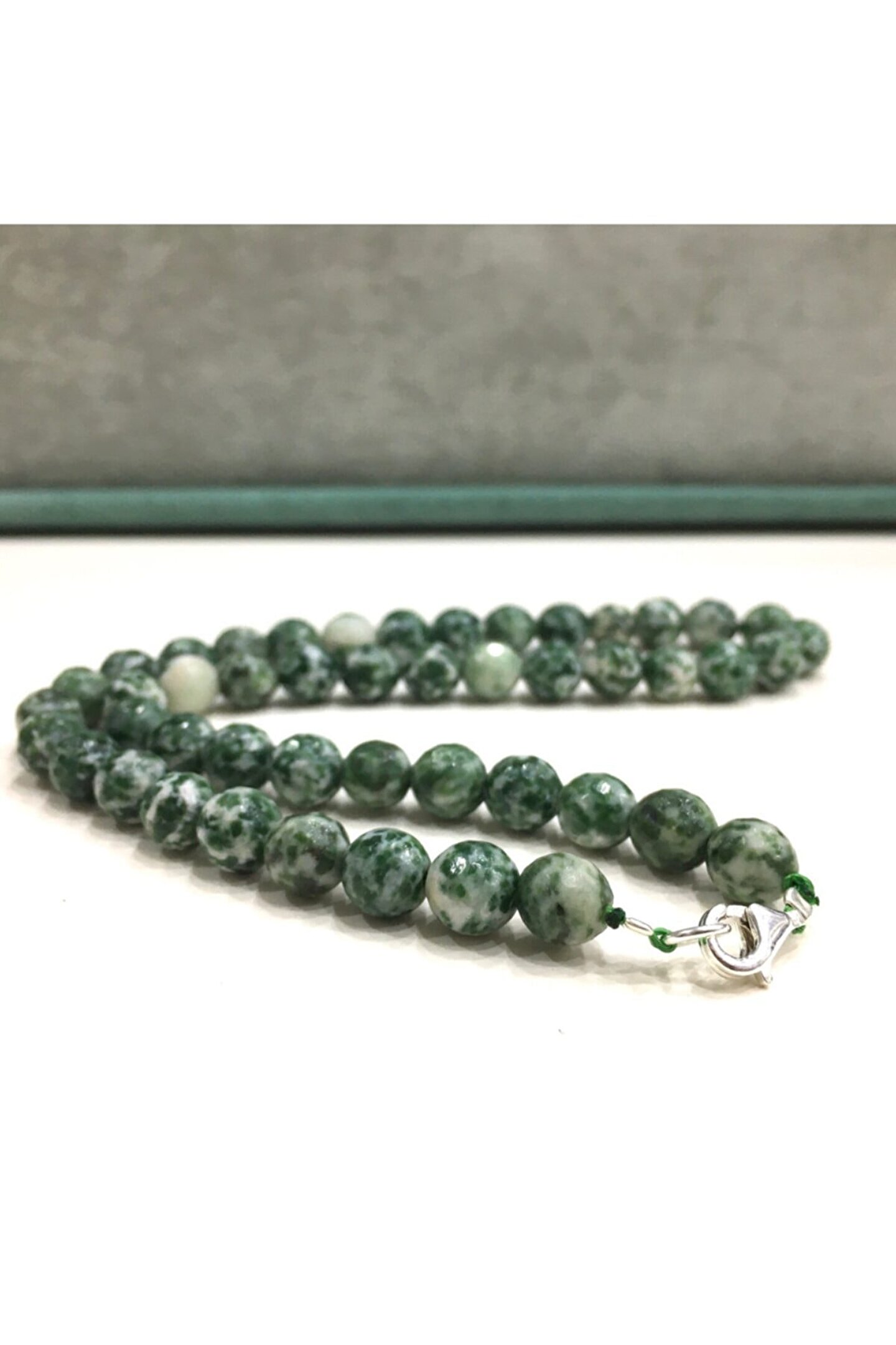 Doğal taş kullanımı, her kolye parçasında benzersiz ve otantik bir görünüm sağlar; Gümüş materyal, hem şıklığı hem de dayanıklılığı bir arada sunarak uzun süreli kullanım imkanı verir; Gümüş klips detayı, kolyenin modern ve zarif bir dokunuşla tamamlanmasını sağlar;