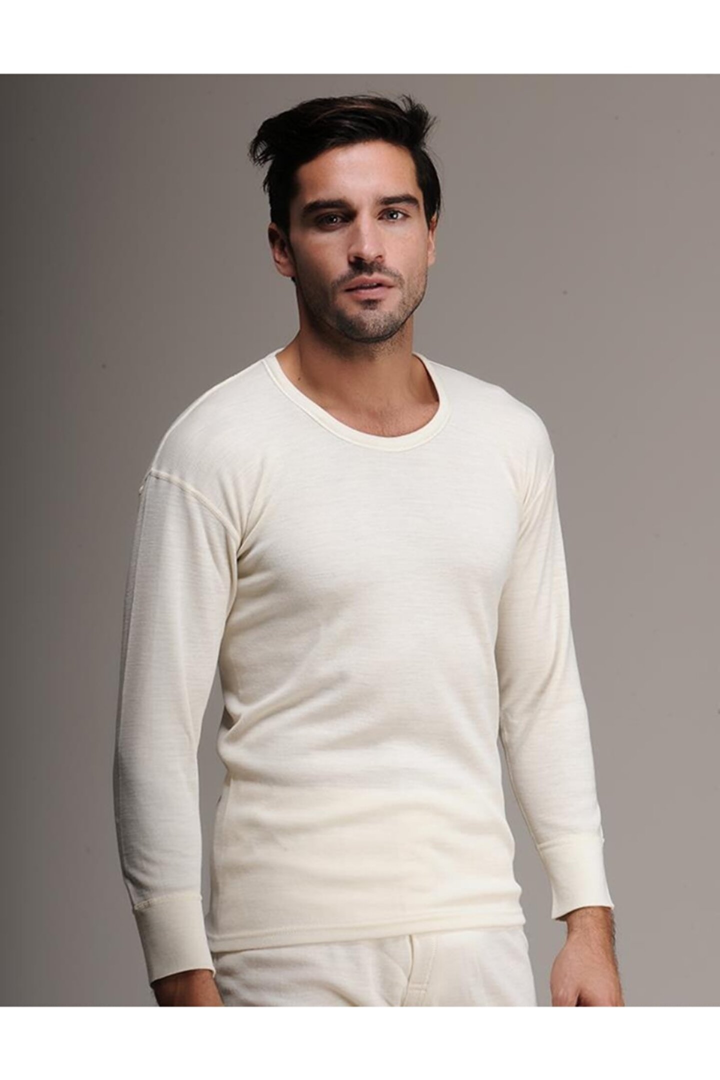 Hasyün 1002 Erkek %100 Yün Uzun Kol Fanila Içlik Ekru Tekli