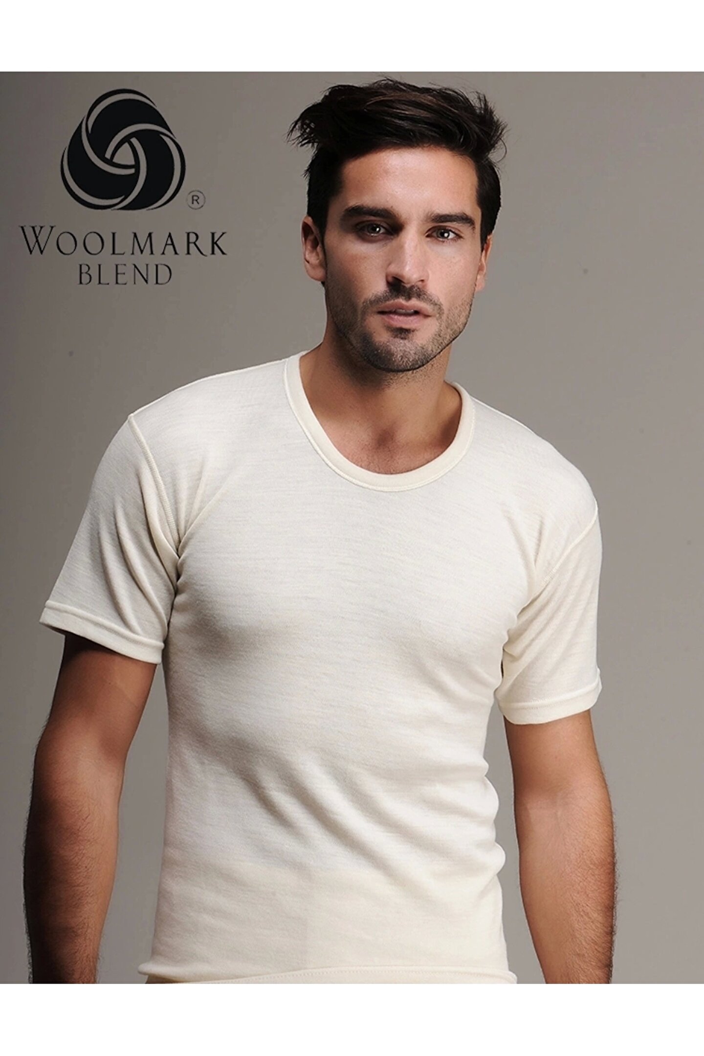 Hasyün 7215-erkek Krem Erkek Yün Kısa Kol Fanila Elf568haserksklccm