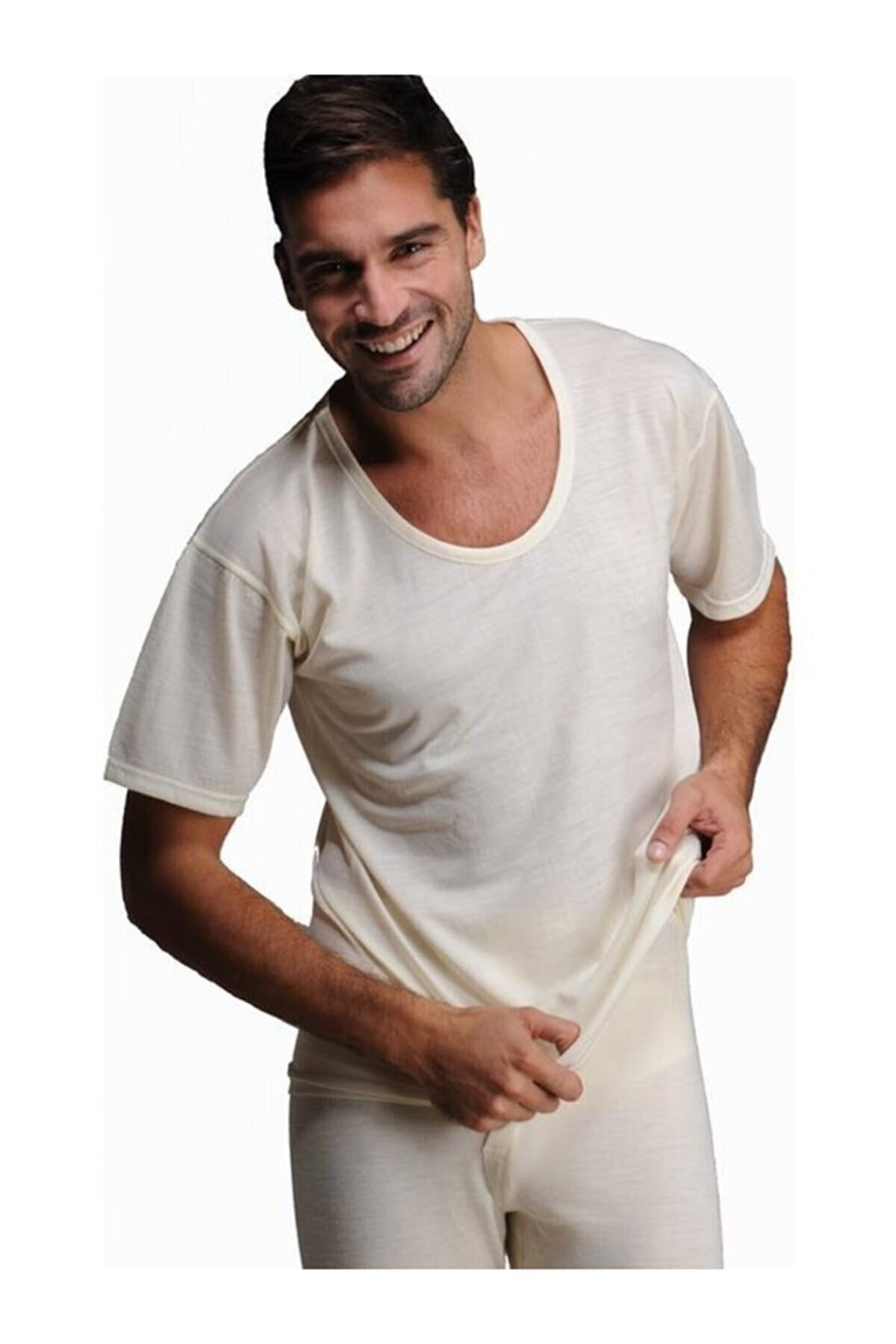 Erkek Ekru Akrilik Kısa Kollu Termal İçlik