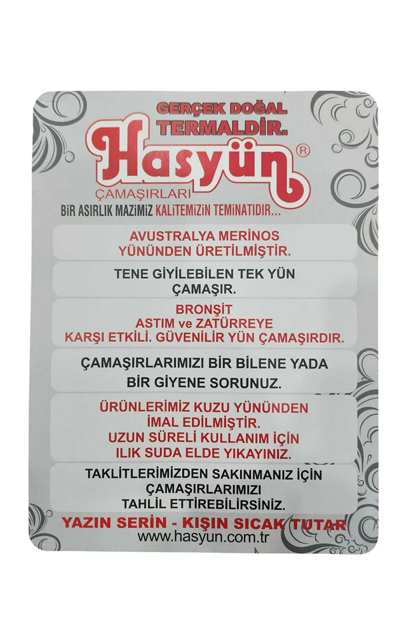 - %75 merinos yünü %25 akrilik - Bir çok romatizman ağrılara iyi gelir.; - Tek parça halinde sunulan Hasyün erkek uzun kollu yün fanila, günlük kullanım için idealdir.; - Kolay bakım imkanı sağlayan yıkama talimatlarına sahip olan bu içlikler, pratikliğiyle öne çıkar.; - Yüksek kaliteli dokuma kumaştan üretilmiş olup, dayanıklılığı ve konforlu yapısıyla dikkat çeker.; - Üretiminden kaynaklanan menşe ülke Türkiye'dir; yerel malzemelerle sürdürülebilir moda anlayışını destekler.; - %100 doğal yünden oluşan materyali sayesinde cildinize nefes aldırırken sıcak tutar ve yumuşaklık sağlar.; - Her yaş grubuna hitap eden geniş kullanıcı kitlesi ile herkes tarafından tercih edilebilecek bir seçenektir.; -Günlük giyime uygunluk göstererek rahatlığınıza katkıda bulunurken aynı zamanda şıklığı da ön planda tutar.;