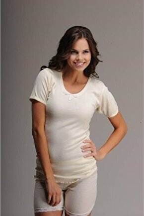 Hasyün Kadın Kaşkorse Yün Kısa Kol Fanila Ekru