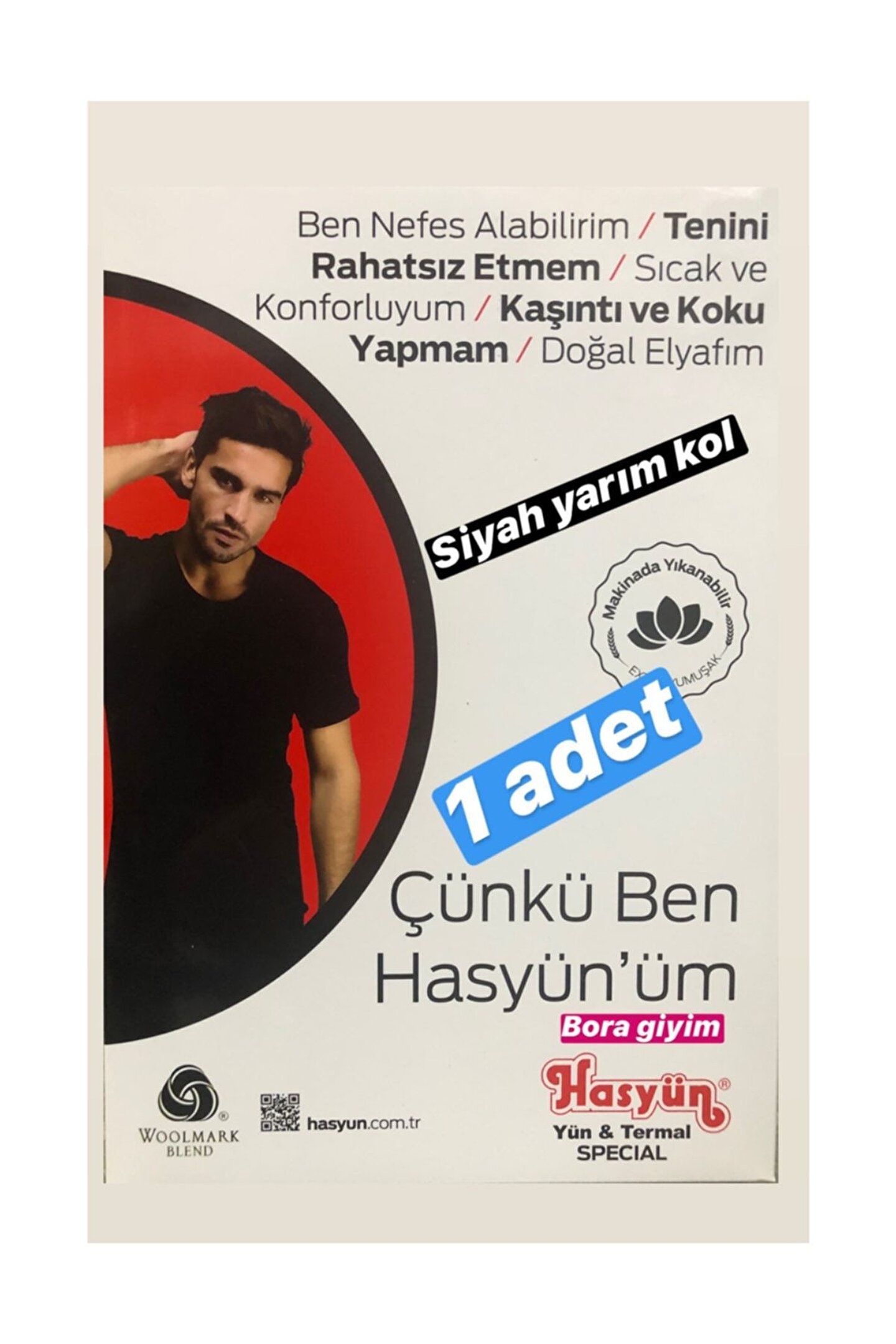 Hasyün Siyah Erkek Kısa Kol % 75 Yün Bora Içlik