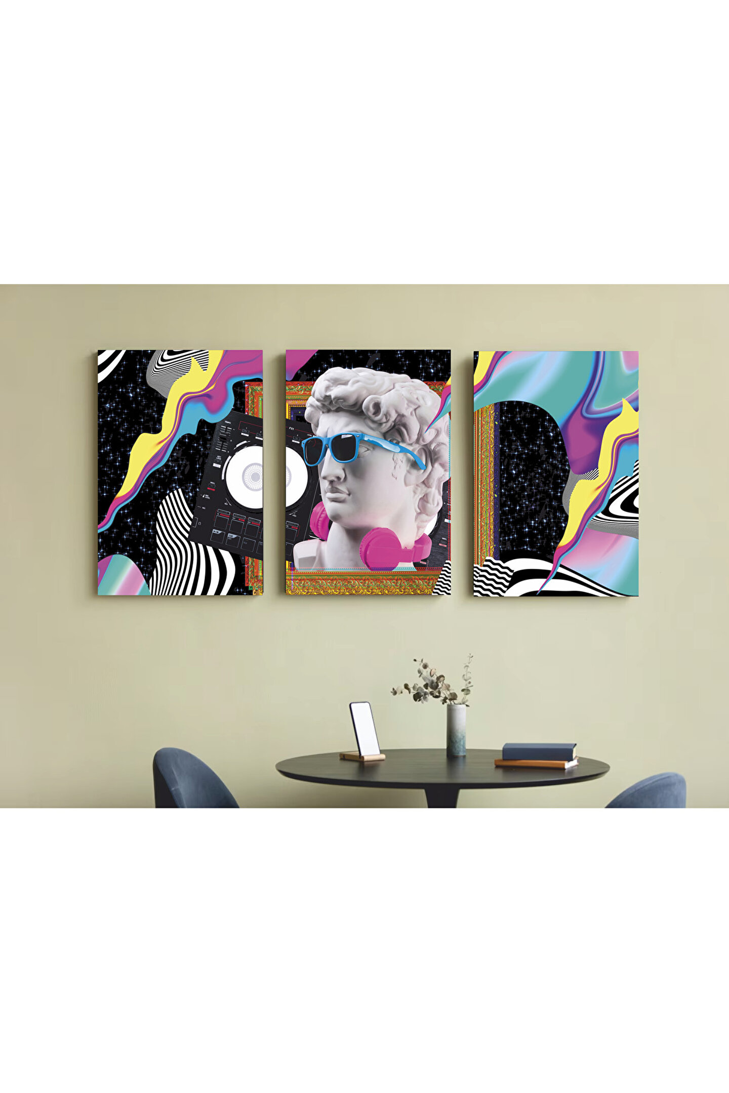 - Retro temalı 80'ler ve 90'lar hipster heykellerini içeren bu set, evinizin veya ofisinizin atmosferine nostaljik bir dokunuş katıyor.; - Çerçevesiz tasarımı sayesinde duvarlarınıza kolayca asılabilir ve istediğiniz şekilde düzenleyebilirsiniz.; - Türkiye'de üretilmiş olup yerel kaynaklı malzemeler kullanılarak çevre dostu bir seçenek sunar.; - Yüksek kaliteli MDF materyali ile uzun ömürlü kullanım vaat ederken, dayanıklılığıyla da ön plana çıkıyor.; - Üç parçadan oluşan bu set, farklı boyutlardaki heykellerle mekanınıza uyumlu bir estetik sağlar.