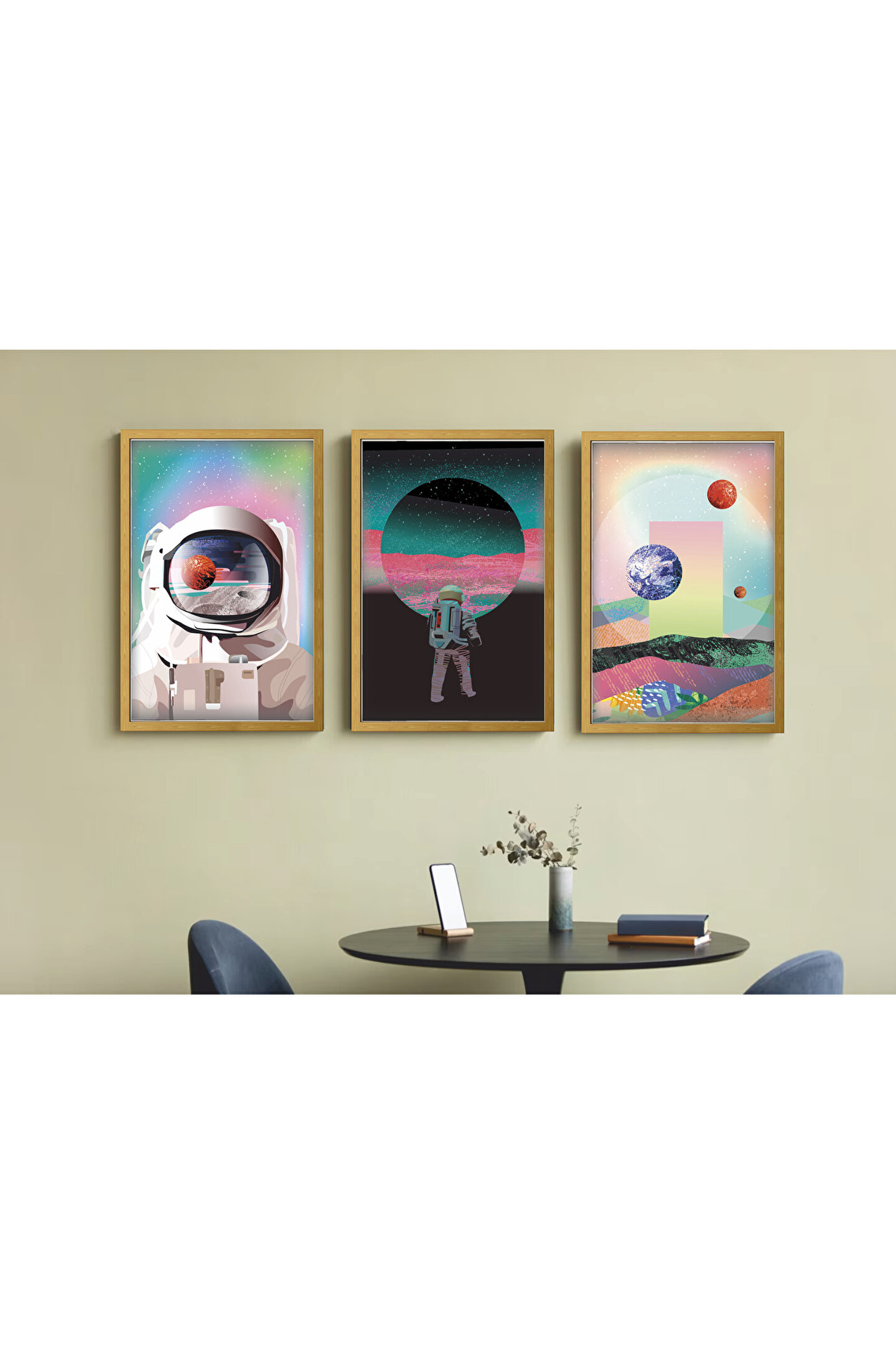 - Çerçevesiz tasarımı ile mekanınıza modern ve minimalist bir dokunuş katar.; - Uzay temalı görselleriyle bilim ve astronot temalarını evinizde sergiler.; - Üç parçadan oluşan set, farklı boyutlardaki tablolarınız için idealdir.; - MDF malzemesi sayesinde dayanıklı ve uzun ömürlü kullanım sunar.; - Türkiye'de üretilmiş olması yerel sanatçıların yeteneğini yansıtır.
