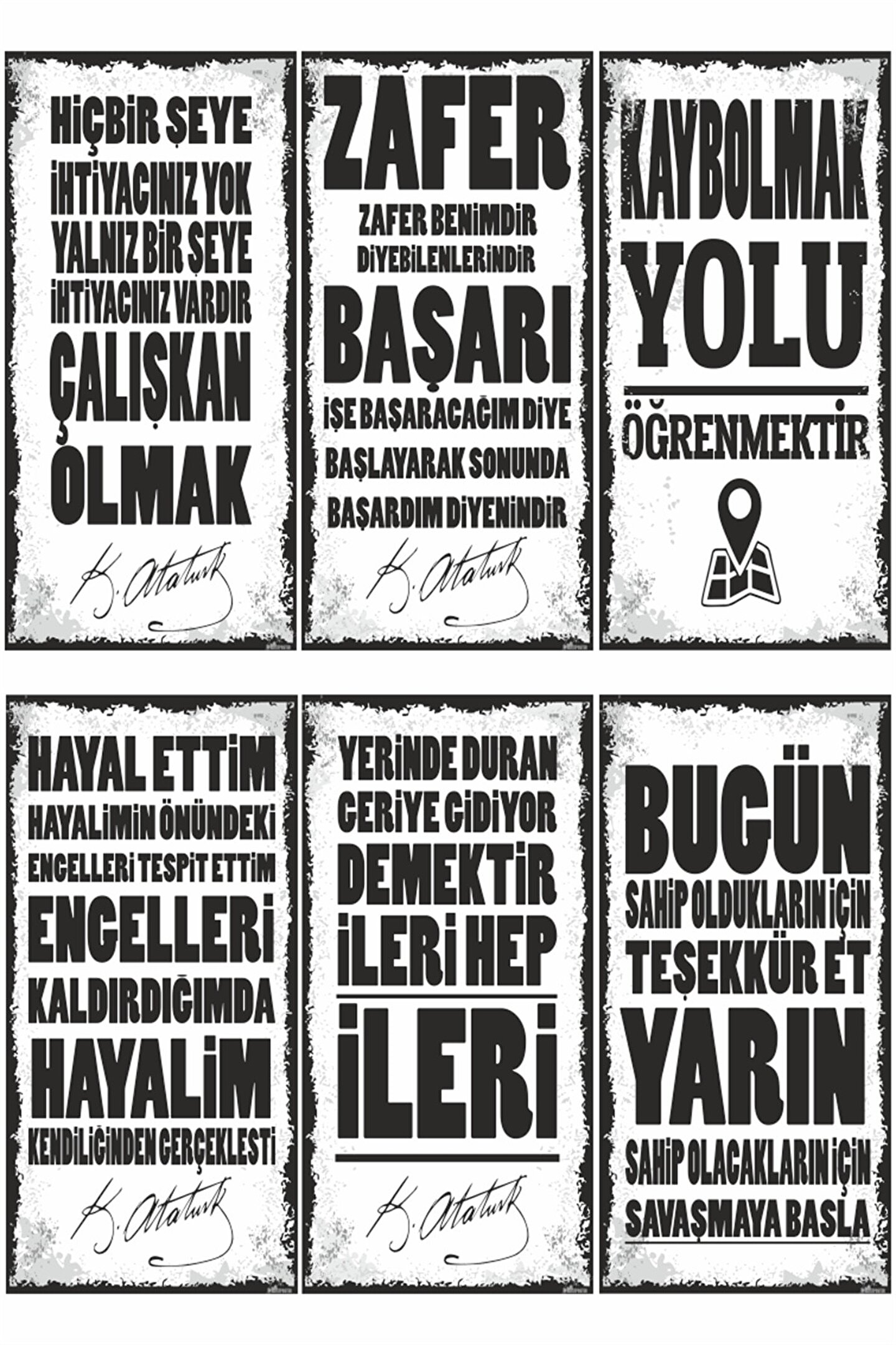 Retro tasarımıyla dikkat çeken bu 6'lı mini ahşap poster seti, evinizin veya ofisinizin dekorasyonuna nostaljik bir dokunuş katıyor; Doğal ahşap malzemesiyle hem dayanıklı hem de estetik bir görünüm sunan bu duvar yazıları, uzun süreli kullanım için idealdir; Atatürk'ün ünlü sözlerini taşıyan bu posterler, motivasyon kaynağı olarak da işlev görerek çalışma alanlarınıza ilham veriyor;