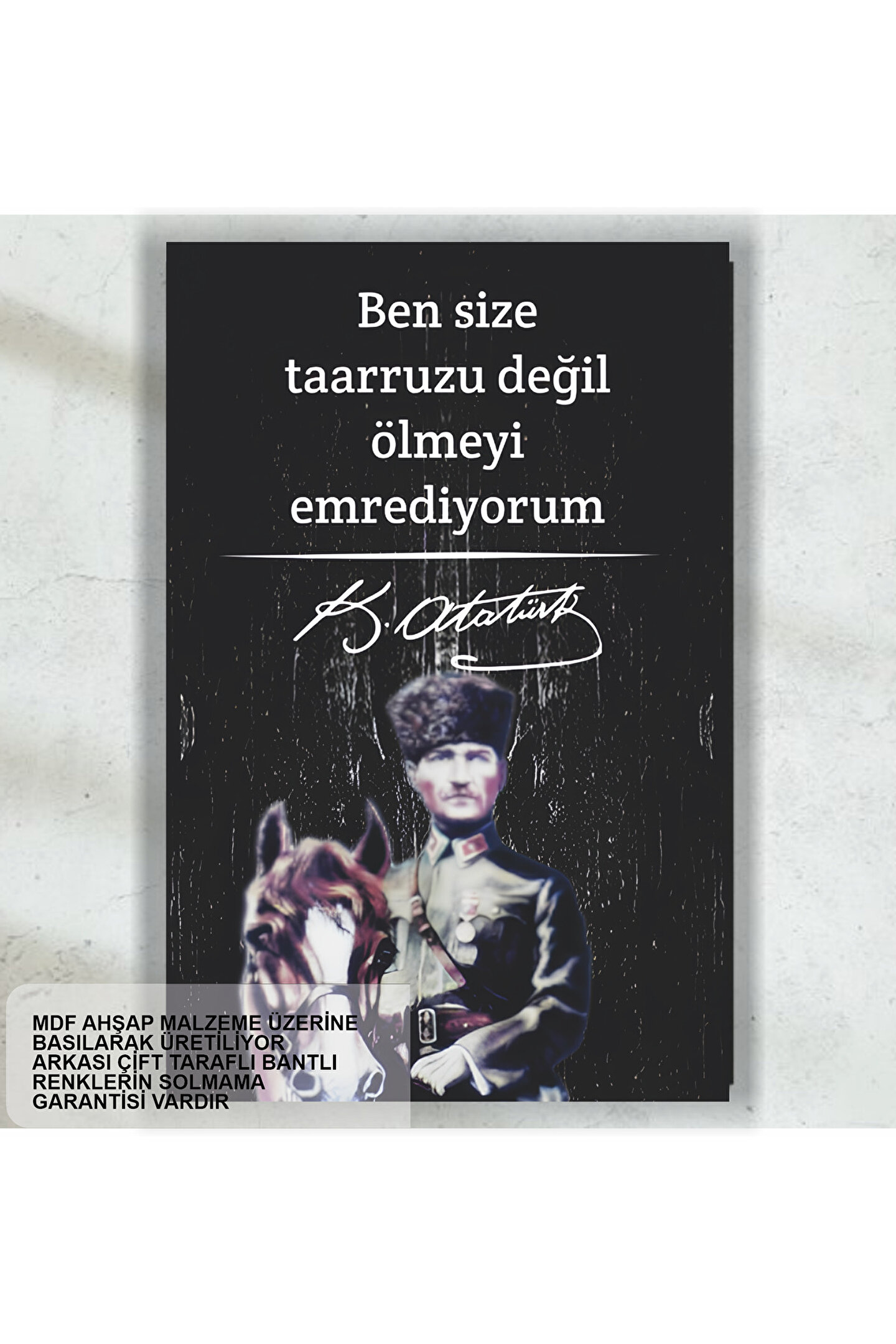 Hayat Poster Atatürk sözleri taarruzu değil ölmeyi emrediyorum mdf tablo retro ahşap poster