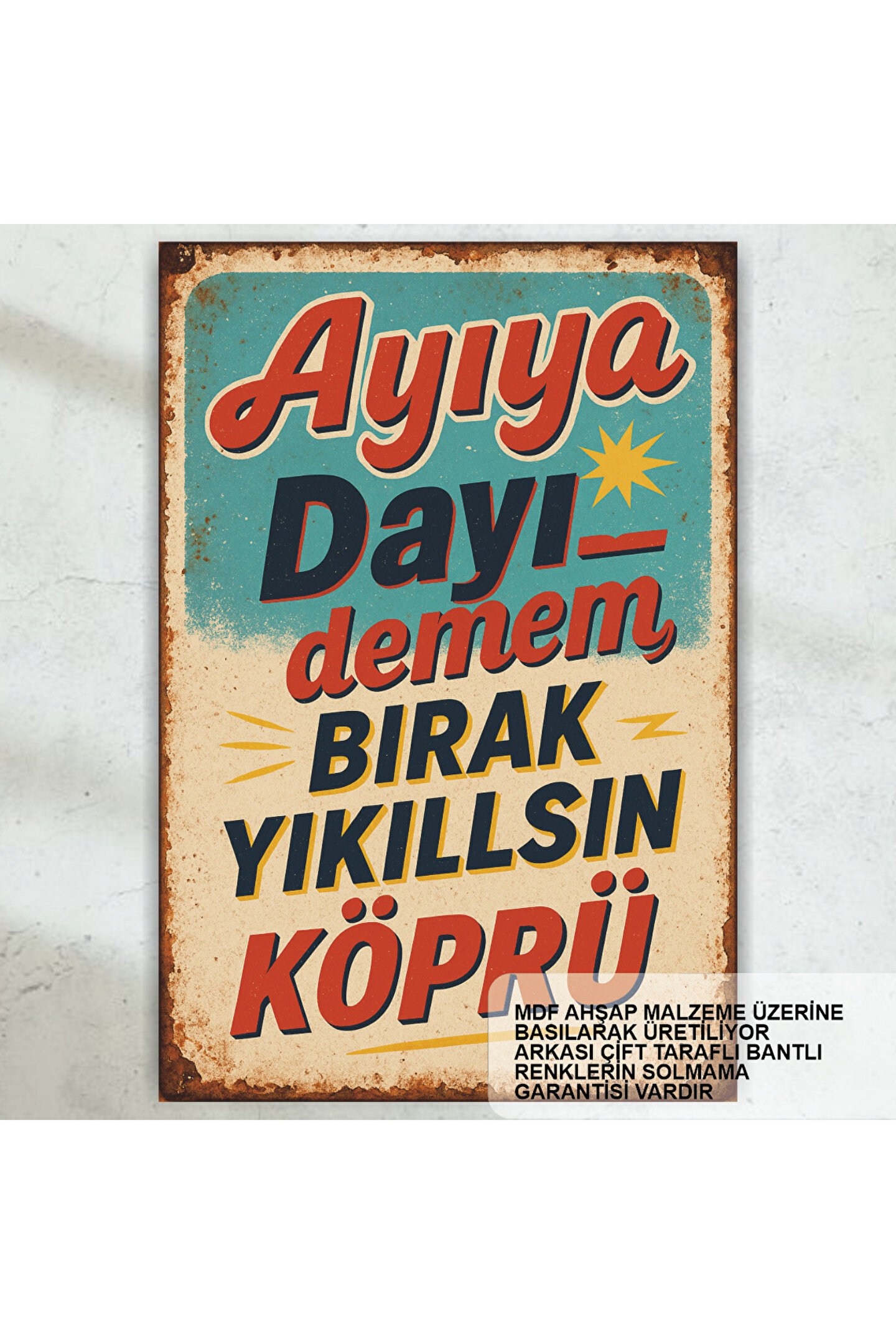 Hayat Poster Ayıya Dayı Demem Atarlı Komik Esprili Sözler Duvar Yazıları Retro Ahşap Poster Tablo