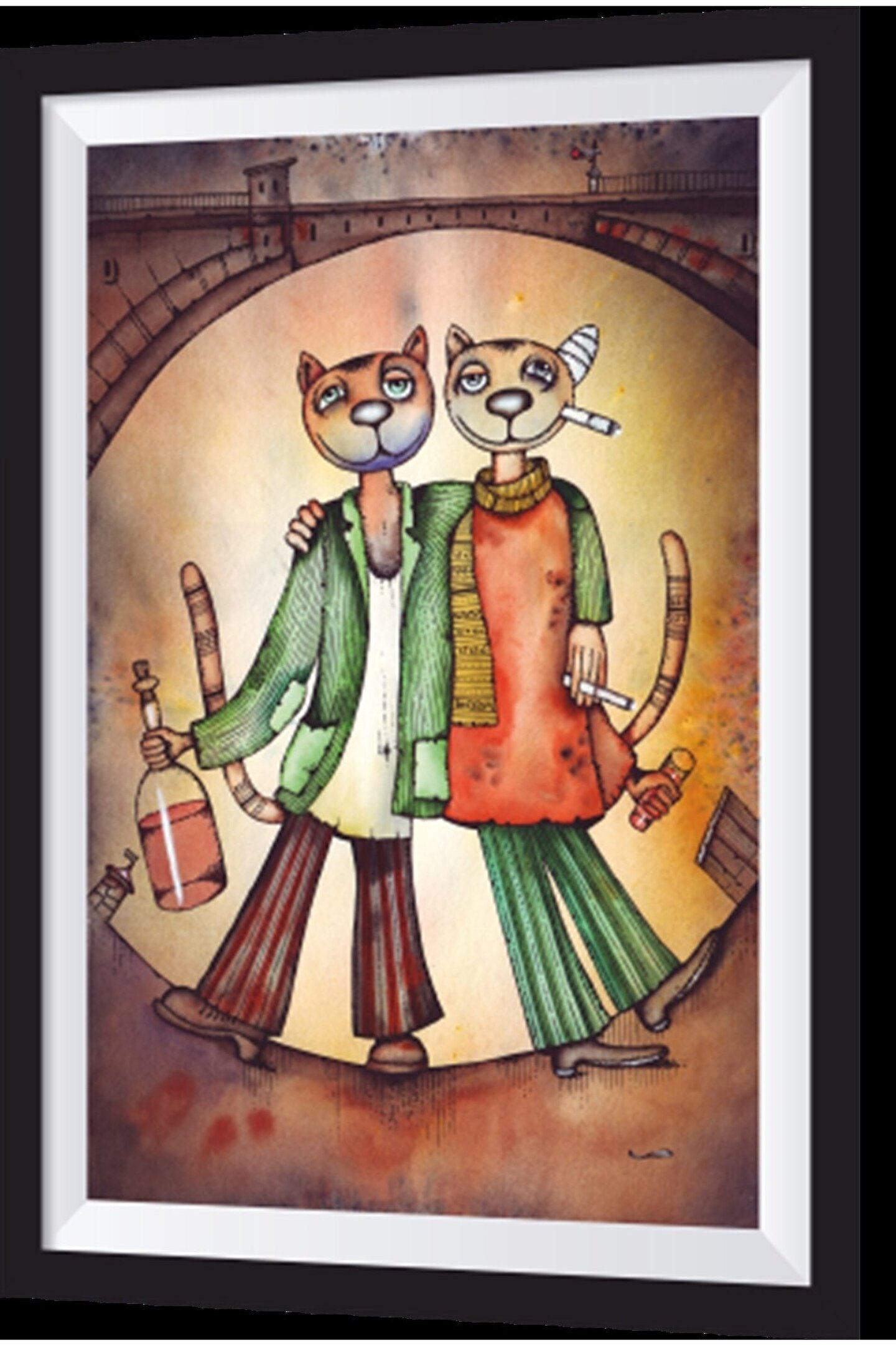 Hayat Poster Ayyaş Kediler Sanatsal Çerçeve Görünümlü Ahşap Tablo