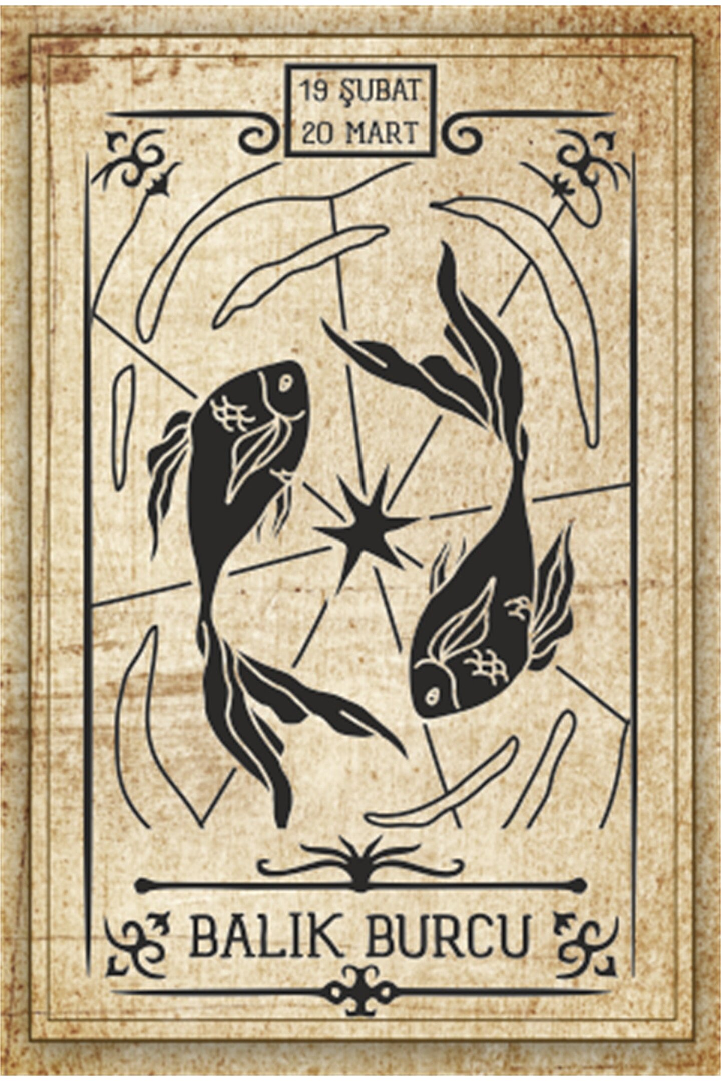 Hayat Poster Balık Burcu Astroloji Burç Retro Ahşap Poster