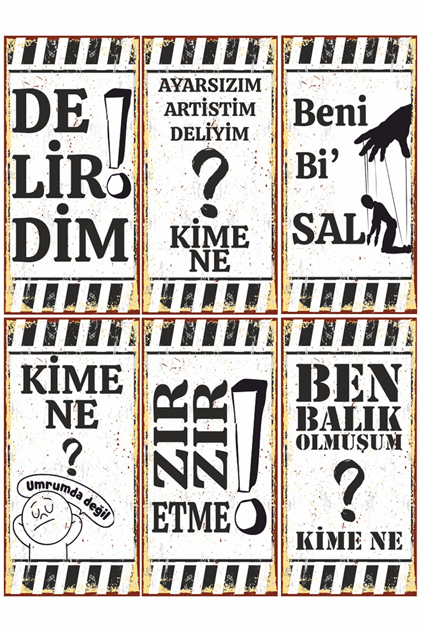 Hayat Poster Ben Balık Olmuşum Eğlenceli Komik Atarlı Duvar Yazıları 6lı Mini Retro Ahşap Poster Seti