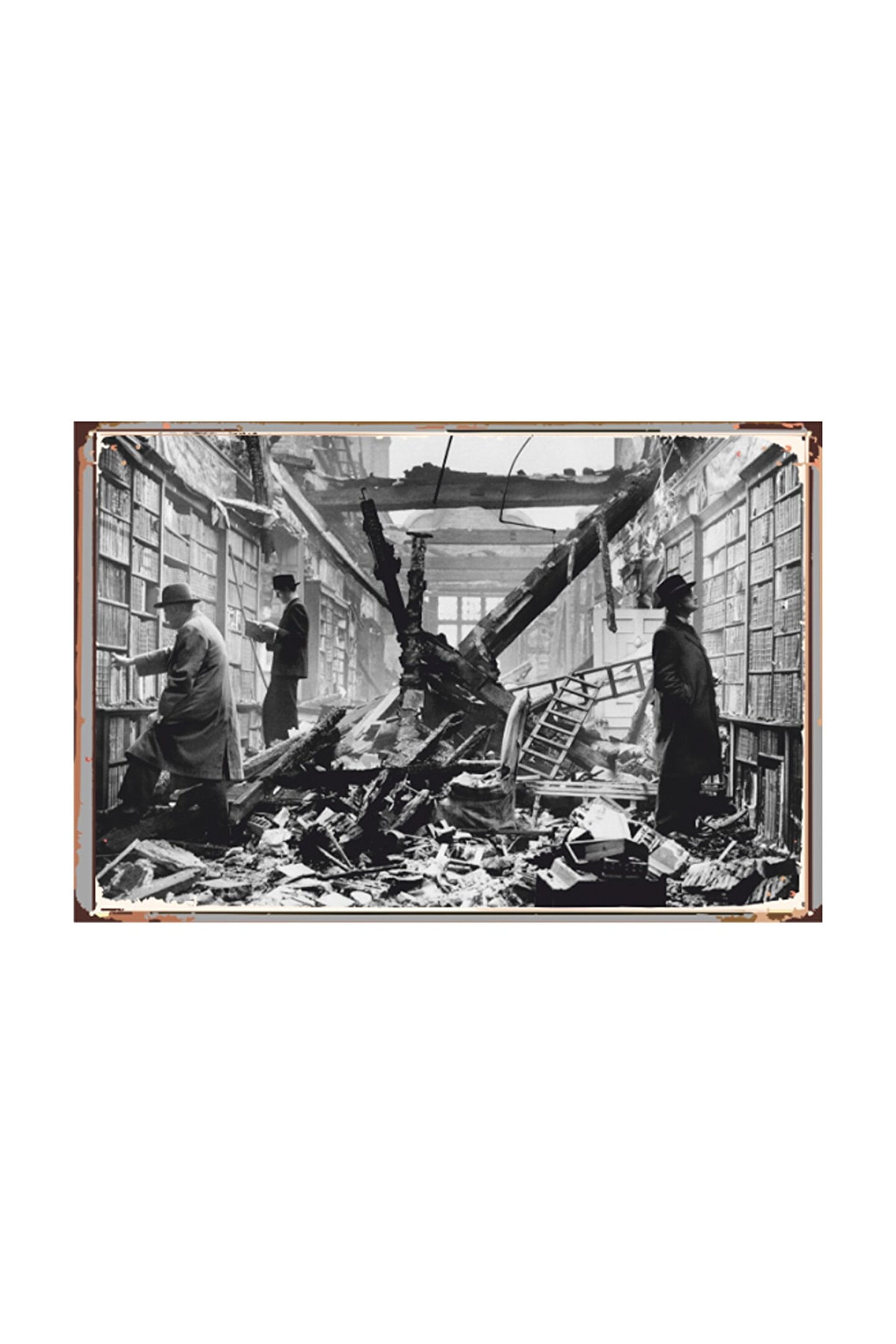 Hayat Poster Bombalanmış Kütüphane Retro Vintage Ahşap Poster 2030028