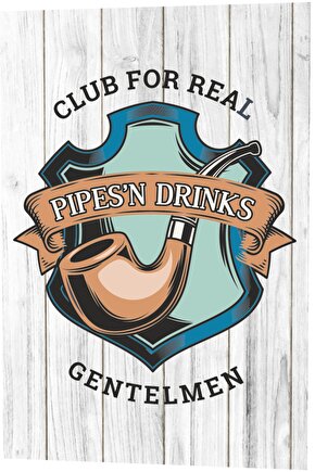 Hayat Poster Centilmen Beyler Kulübü Pipo Tütün Ahşap Desenli Retro Vintage Ahşap Poster