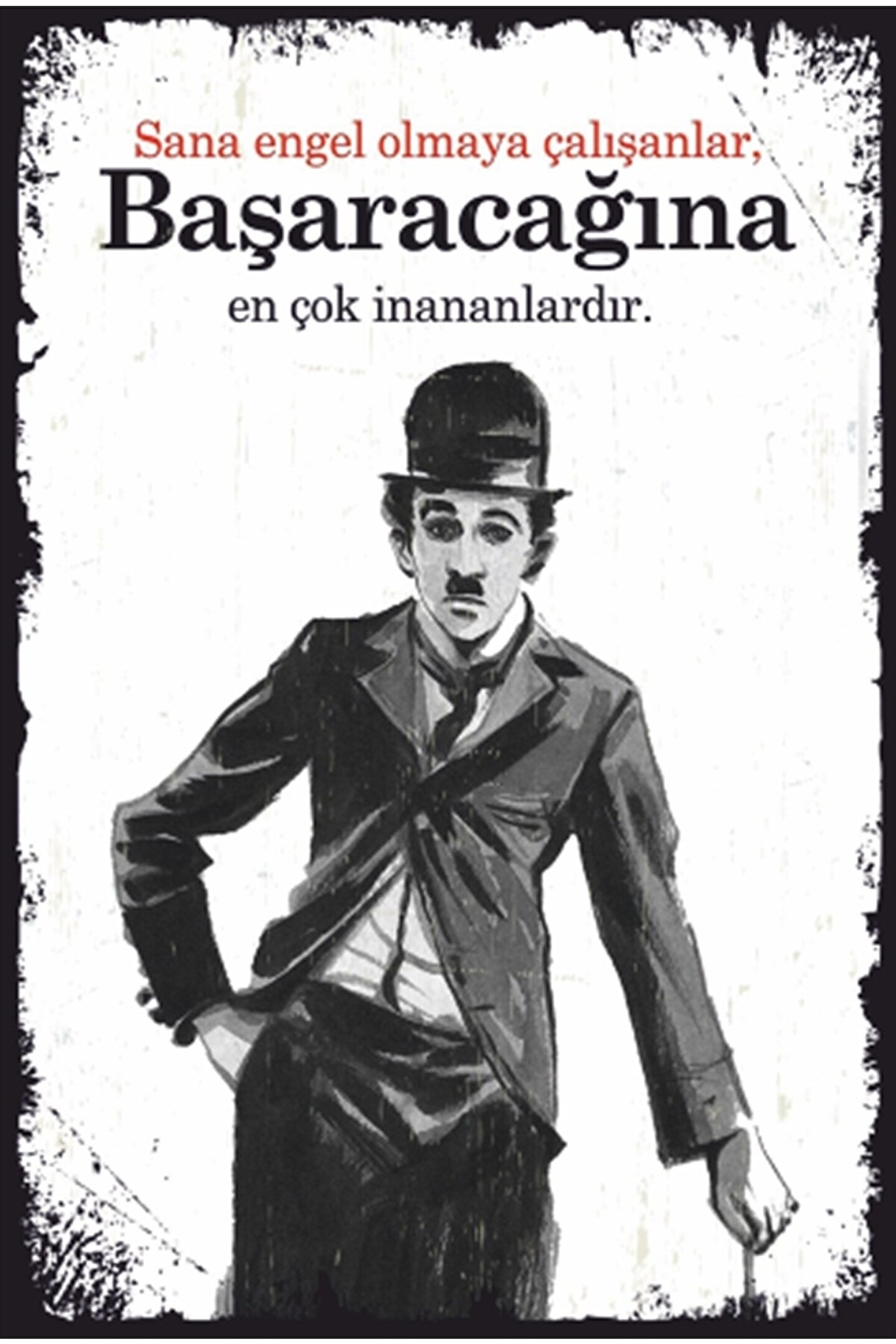 - Tek parça halinde sunulan Charlie Chaplin sözleri, retro tasarımıyla dikkat çeker ve evinizin dekorasyonuna nostaljik bir dokunuş katar; - Ahşap malzemesiyle doğal bir görünüm sunan bu tablo, dayanıklılığı ve estetiği bir arada barındırır; - Retro temalı tasarımıyla 20. yüzyılın başlarına ait bir atmosfer yaratır ve duvarlarınıza zamansız bir hava katar;