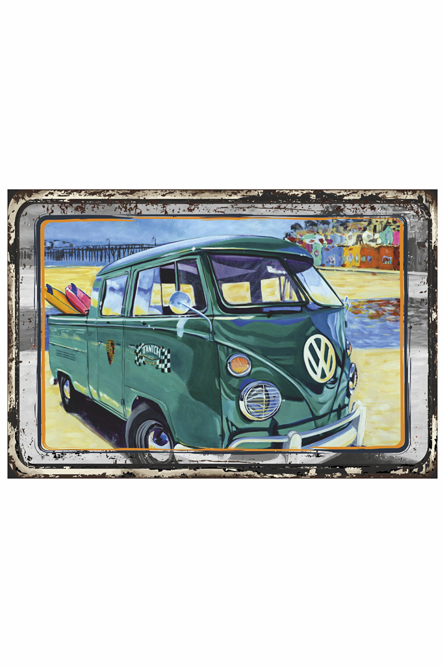 Hayat Poster deniz kenarında sahilde vosvos wan sörf klasik nostaljik araba retro ahşap poster