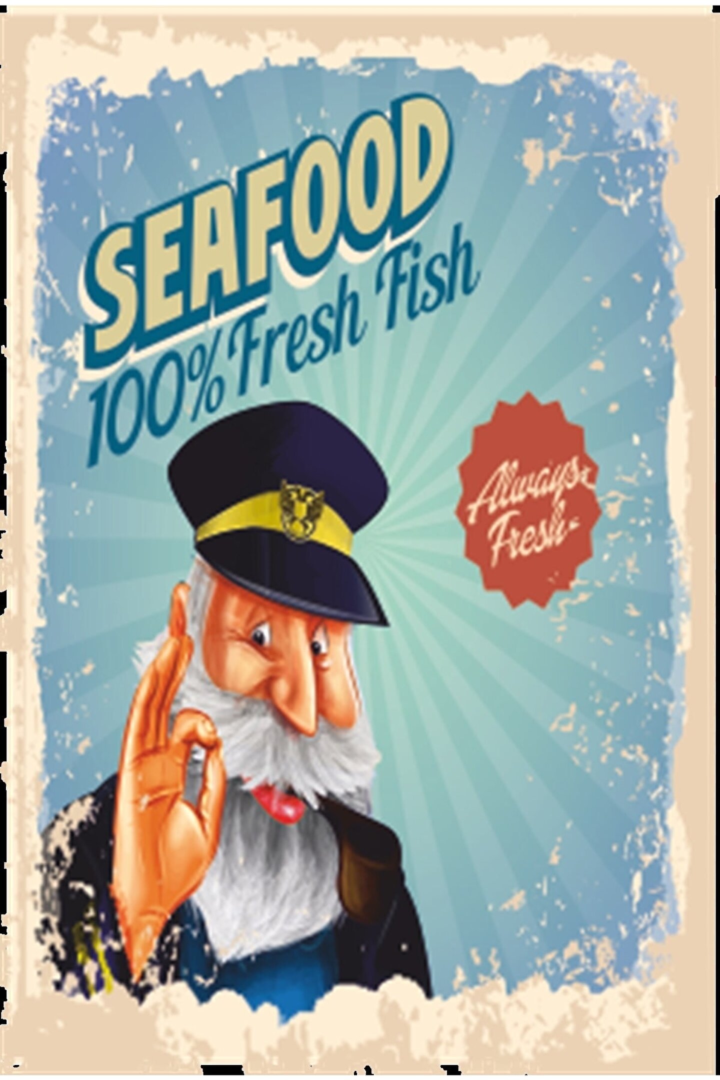 Hayat Poster Deniz Mahsülleri Gemi Kaptanı Mutfak Retro Ahşap Poster