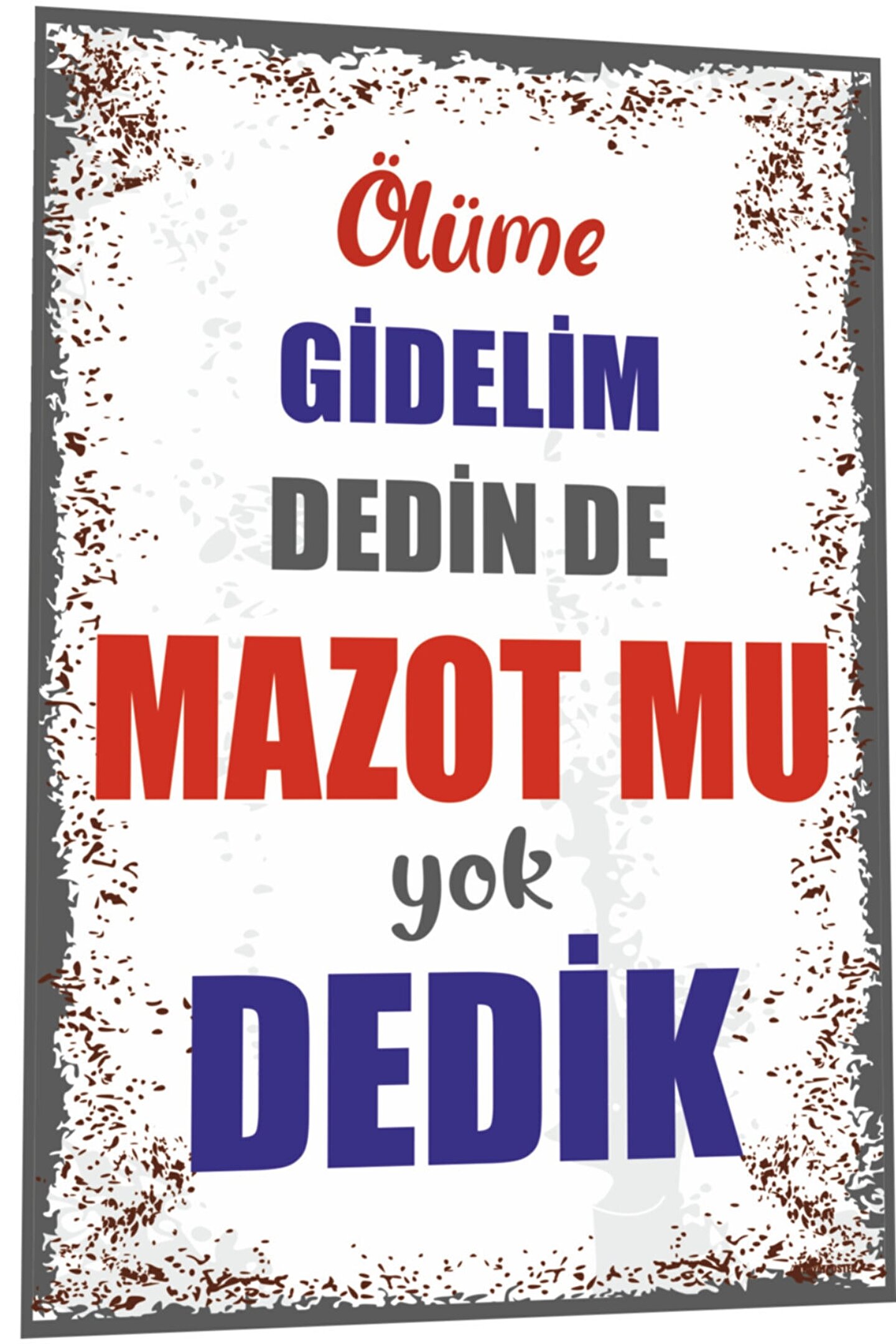 Duvar yazıları ölüme gidelim dedin de mazot mu yok dedik retro ahşap poster 791 Posterlerimiz 3 mm mdf üzerine baskıdır Ebat 20x 30 cm Posterlerimizin arkasında her yere rahatlıkla yapıştırabilmeniz için çift taraflı bantlar bulunmaktadır Hayat poster farkıyla