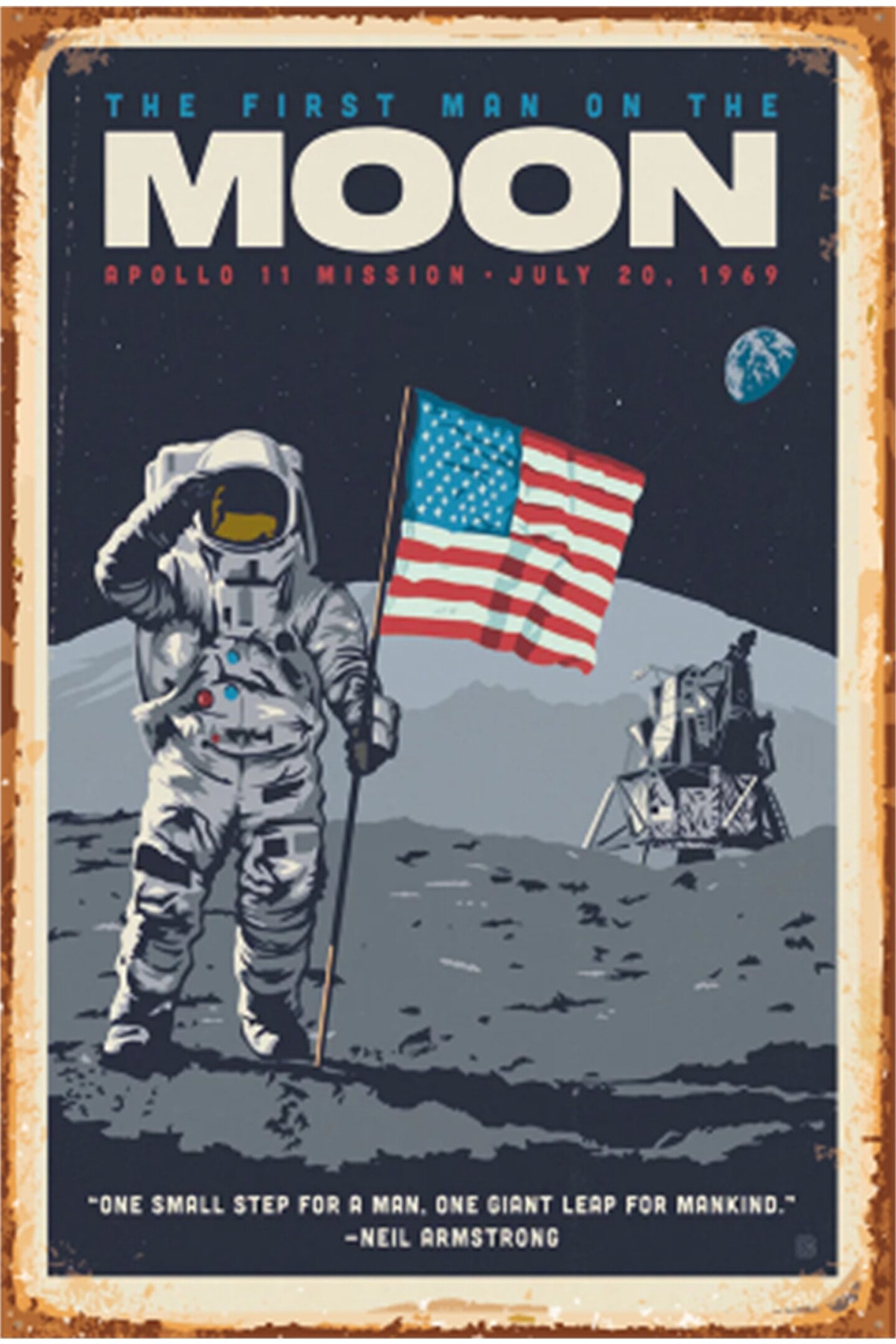 Hayat Poster Eğlenceli Uzay Ve Gezegenler Ay Ve Astronot Retro Ahşap Poster