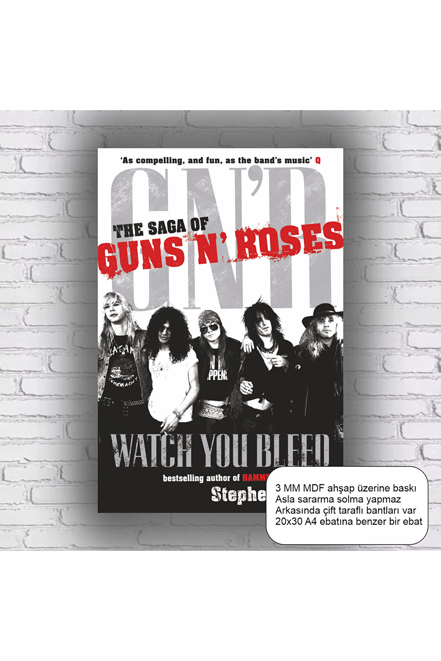 - Rock müzik tutkunları için ideal, retro temalı Guns'n Roses ev dekorasyon MDF tablo.; - Yüksek kaliteli MDF malzemeden üretilmiş, uzun ömürlü ve dayanıklı kullanım sunar.; - Çerçevesiz tasarımı sayesinde, mevcut dekorasyonunuza kolayca uyum sağlar ve kişisel dokunuşlar eklemenize olanak tanır.; - Türkiye'de üretilmiş olup, yerel işçiliği destekler ve kalite standartlarına uygundur.; - Tek parça halinde gönderilir, montaj gerektirmez ve kolayca asılabilir.;