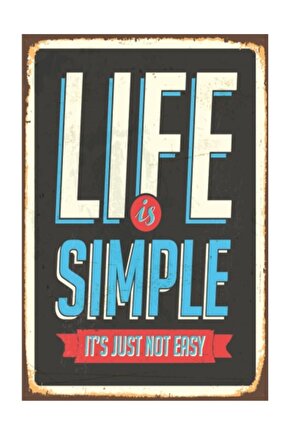Hayat Poster Hayat Kolay Sadece Basit Değil Retro Vintage Ahşap Poster