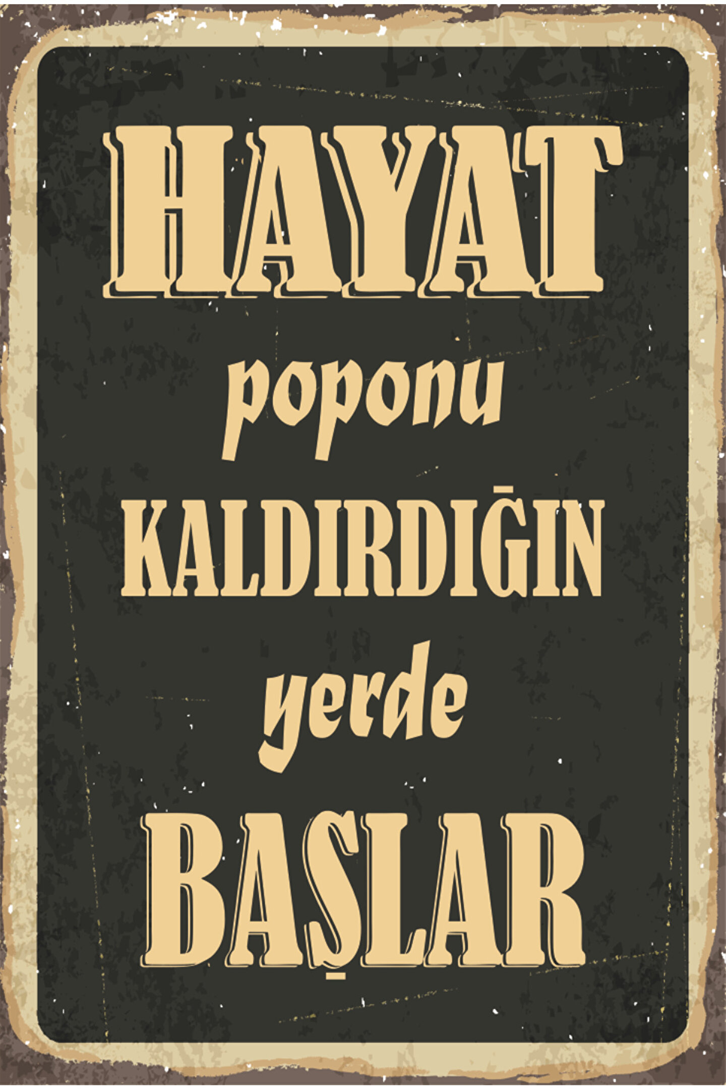 Hayat Poster hayat poponu kaldırdığın yerde başlar motivasyon eğlenceli komik duvar yazıları retro ahşap poster