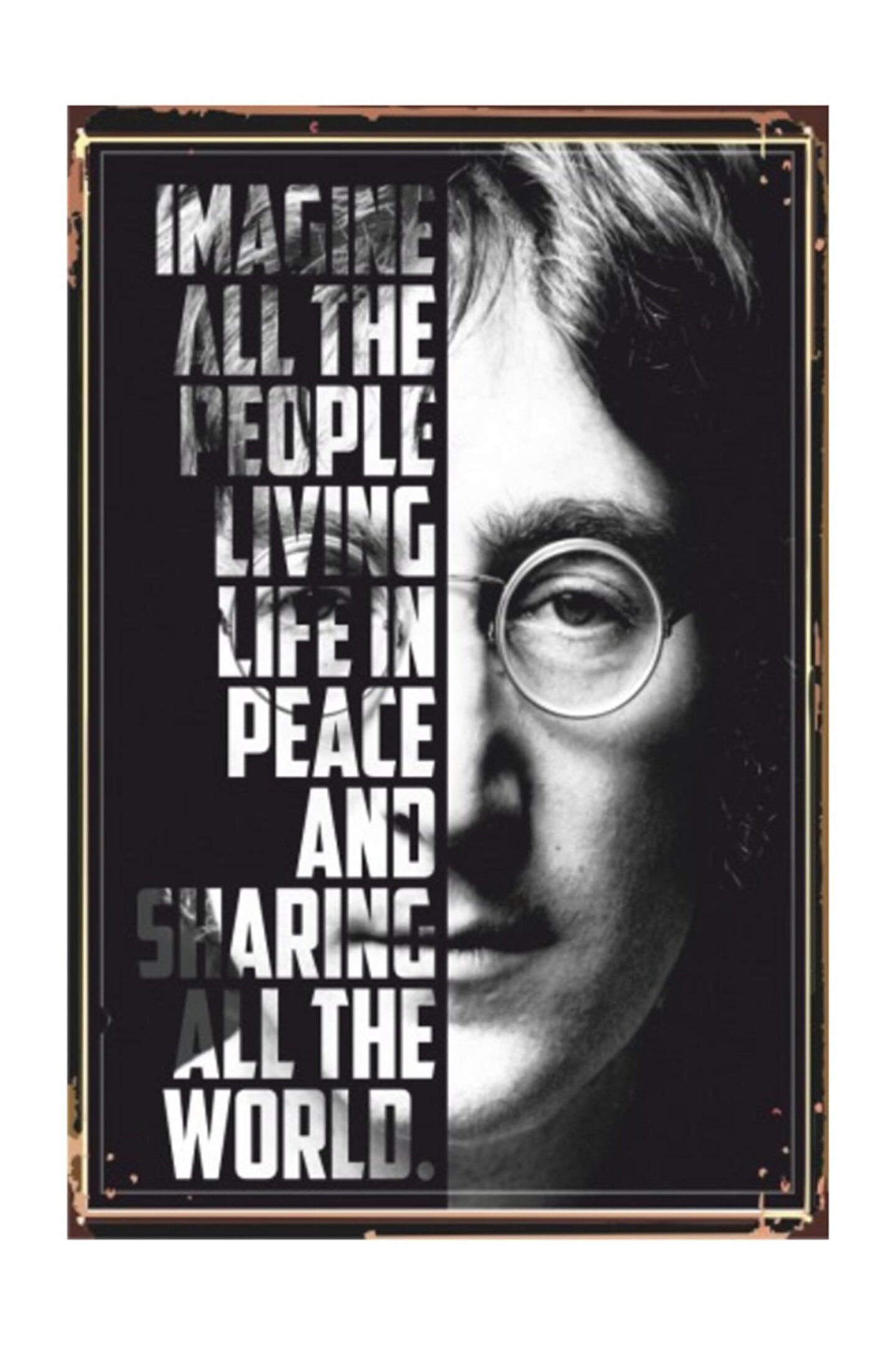 Hayat Poster John Lennon Imagine Retro Vintage Ahşap Poster