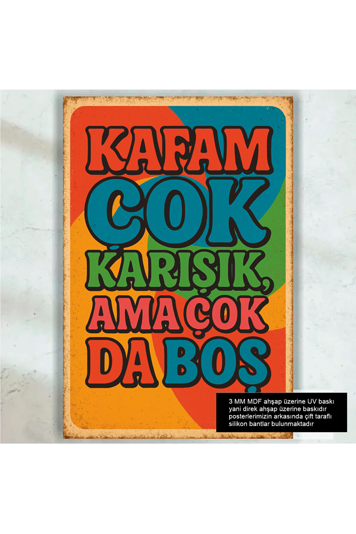 - Retro tasarımıyla dikkat çeken bu duvar yazıları, kafanızı karıştıracak komik ve eğlenceli mesajlarıyla mekanınıza neşe katıyor.; - Tek parça halinde gelen bu ürün, kolay montaj avantajıyla hemen kullanıma hazır hale geliyor.; - Türk malı olan bu posterler, yerel üretim kalitesini yansıtarak dayanıklılık sunuyor.; - MDF materyali sayesinde uzun ömürlü kullanım vaat ediyor ve estetik görünümünü koruyor.; - Çerçevesiz tasarımı ile modern ve minimalist dekorasyon tarzlarına uyum sağlayarak odanızın atmosferine şık bir dokunuş ekliyor.
