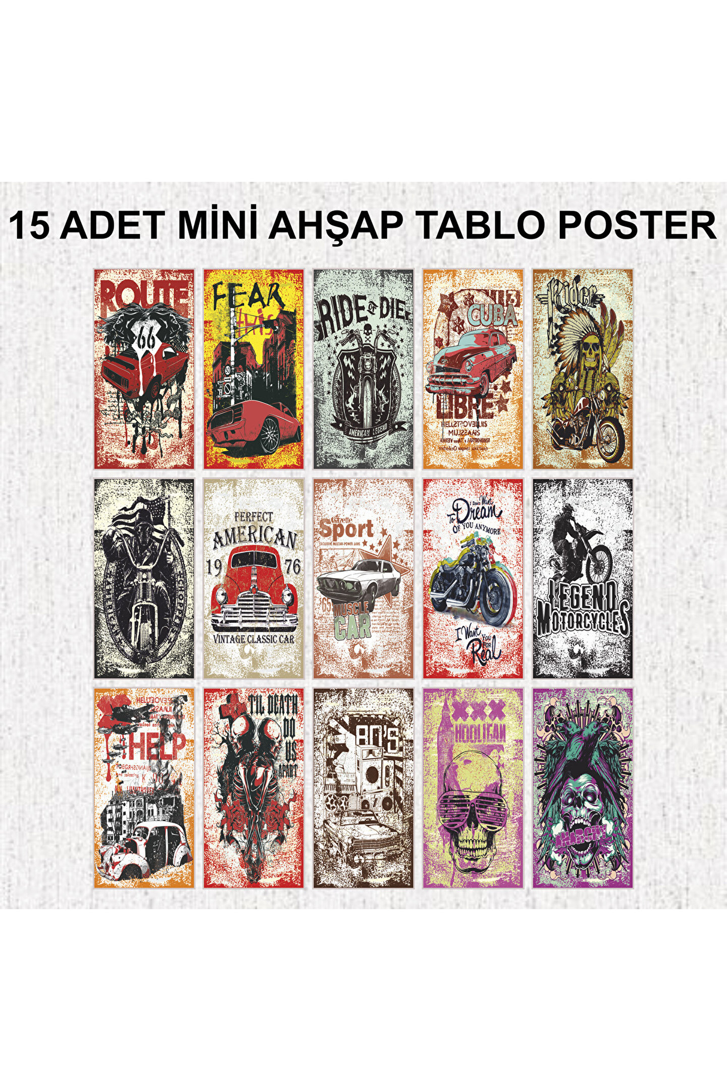 Hayat Poster klasik araba ve motor dekorasyon tablo 15 mdf ahşap tablo seti