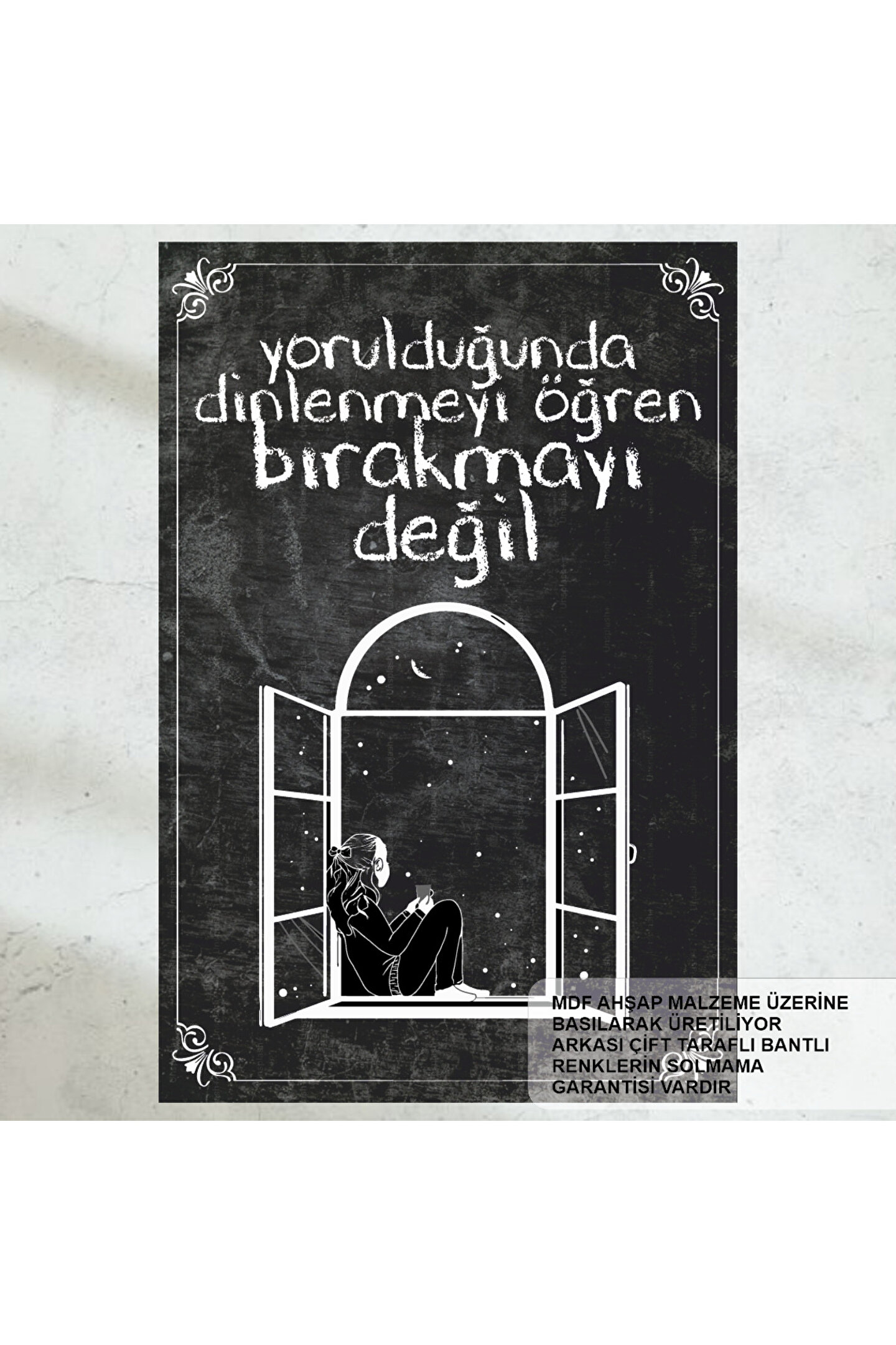 - Cesaretinizi kırılmaz bir şekilde korumanızı sağlayan, mücadele ruhunuzu öne çıkaran motivasyon dolu sözlerle donatılmış bir poster.; - Retro tasarımıyla dikkat çeken bu ahşap poster, yaşam alanınıza nostaljik bir dokunuş katıyor.; - Çerçevesiz yapısı sayesinde istediğiniz yerde serbestçe asabilir veya masanızda, duvarınızda kullanabilirsiniz.; - Üretici bilgisinin Türkiye'den gelmesiyle yerel sanatçıların emeğini destekliyorsunuz.; - İlham verici sözlerle dolu bu poster, motivasyonunuzu artırmak için ideal bir seçimdir.; - Dayanıklı MDF materyali ile uzun süreli kullanım vaat ediyor; böylece yıllar boyu yanınızda kalacak.; - Tek parça halinde gelen bu ürün, kolayca monte edilebilir ve pratik bir kullanım sunar.