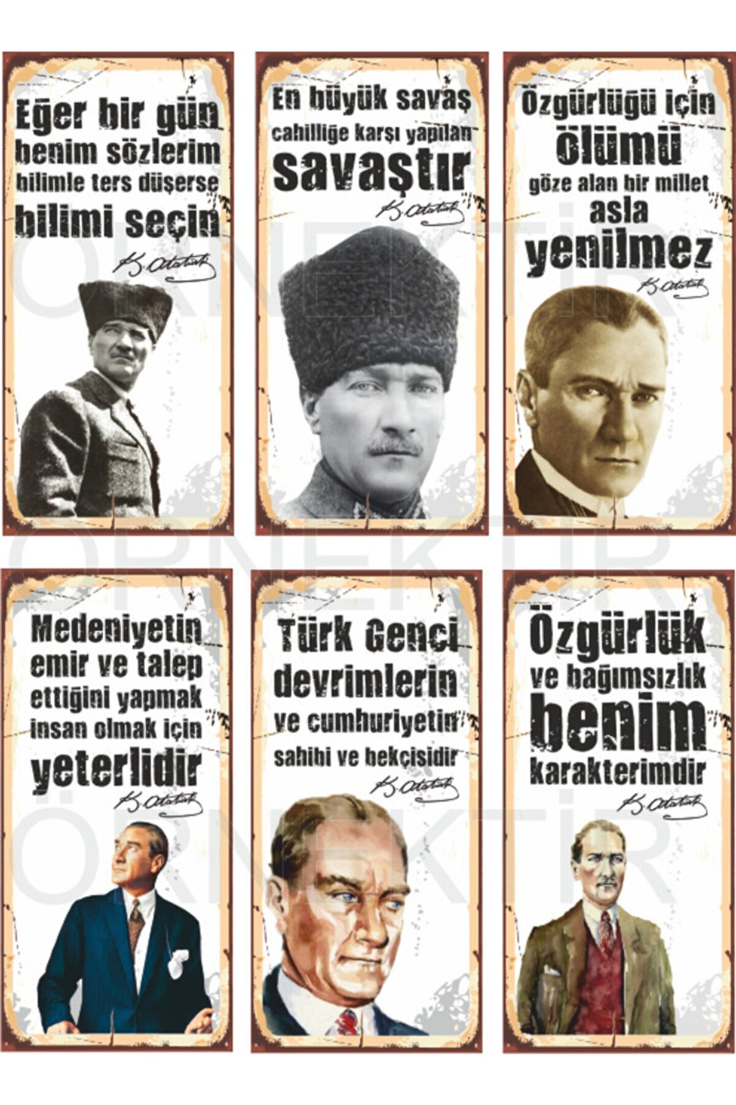 Hayat Poster Mustafa Kemal Atatürk 6lı Mini Retro Ahşap Poster Seti