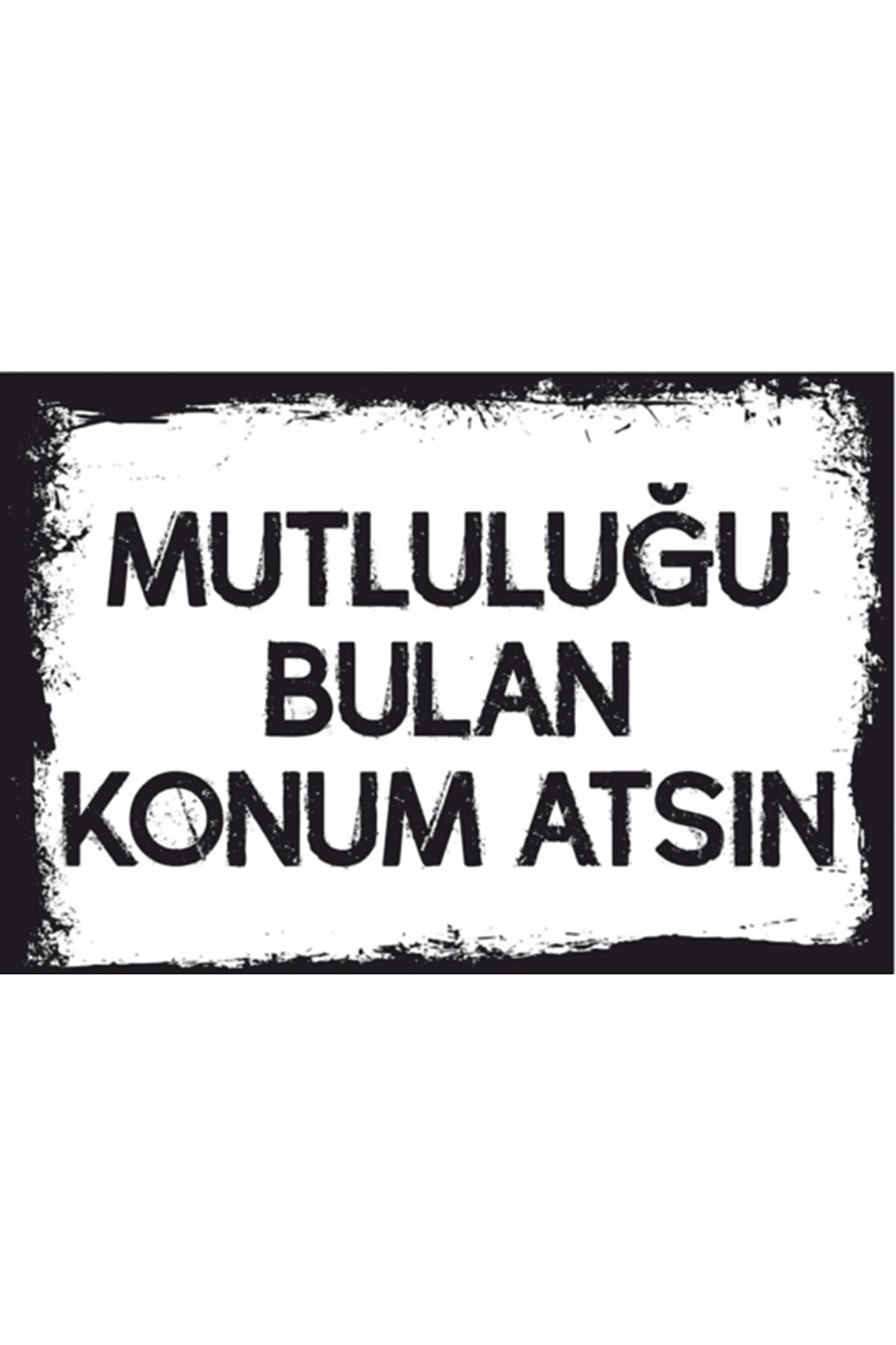 Hayat Poster Mutluluğu Bulan Konum Atsın Komik Sözler Retro Ahşap Poster