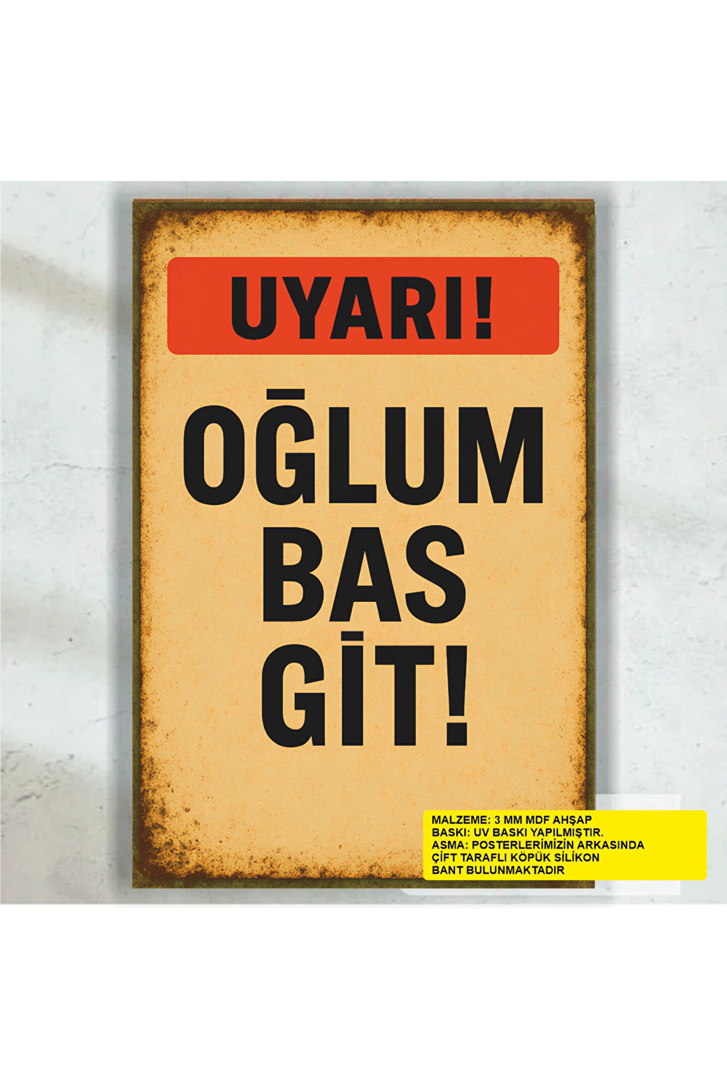 - Retro tasarımıyla dikkat çeken bu ahşap poster, oğlunuzun odasına nostaljik bir hava katıyor.; - Tek parça halinde gelen bu ürün, kolay montaj avantajı sunarak zaman kazandırıyor.; - Dayanıklı MDF malzemesi sayesinde uzun ömürlü kullanım vaat ediyor.; - Çerçevesiz yapısı ile modern ve minimalist dekorasyon tarzlarına uyum sağlıyor.; - Duvar yazıları ve komik esprilerle dolu olan bu poster, oğlunuzun odasına eğlenceli bir dokunuş ekliyor.