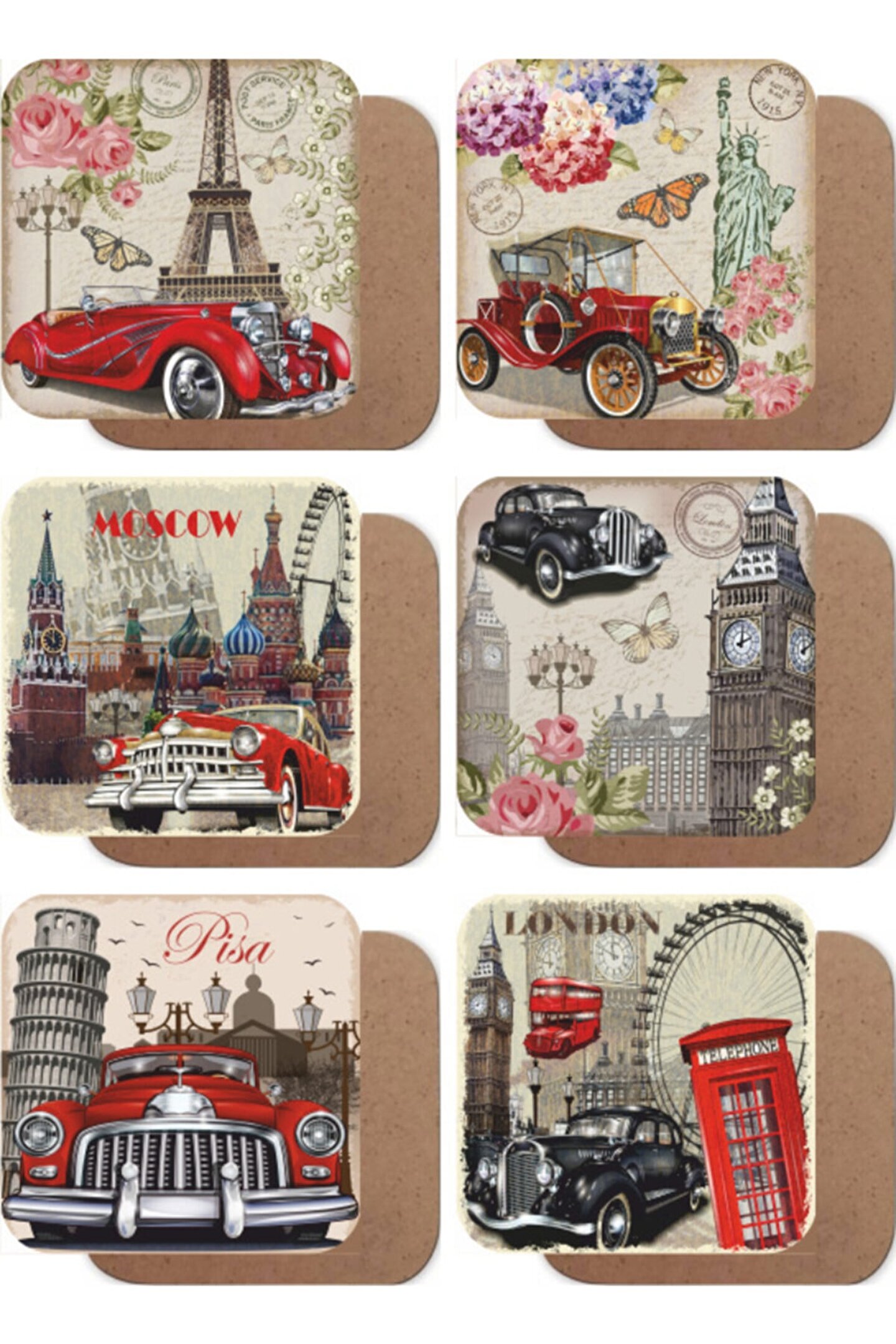 - Ahşap malzeme kullanımı sayesinde dayanıklı ve uzun ömürlü bir kullanım sunar; - Klasik Paris, Roma, Londra ve Moskova gibi ünlü şehirlerin simgelerini taşıyan tasarımıyla sofra düzeninize şıklık katar; - Altı adet bardak altlığı seti, misafirlerinize aynı anda servis yapabilmeniz için idealdir; - Her bir bardak altlığı, bardaklarınızın altında güvenli bir şekilde durmasını sağlayarak dökülmeleri önler;