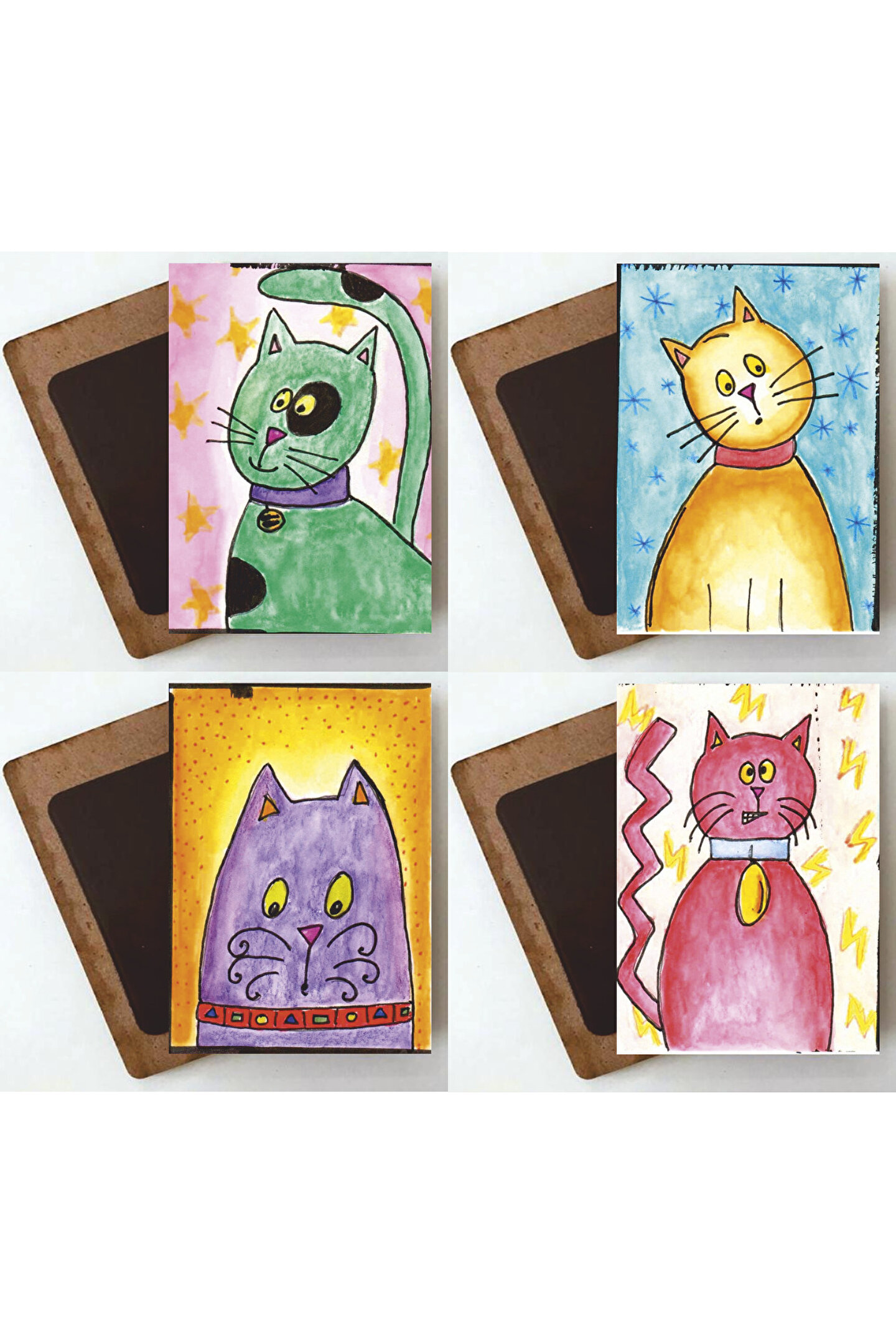 Hayvan severlerin beğenisine sunulan bu 4'lü ahşap magnet seti, buzdolabınıza neşeli bir dokunuş katıyor; Renkli ve sevimli kedi tasarımları ile mutfak dekorasyonunuza eğlenceli bir hava getiriyor; Ahşap malzeme kullanımı sayesinde dayanıklı ve uzun ömürlü bir kullanım sunuyor; Hayvan desenli tasarımı ile mutfakta geçirdiğiniz zamanı daha keyifli hale getiriyor;