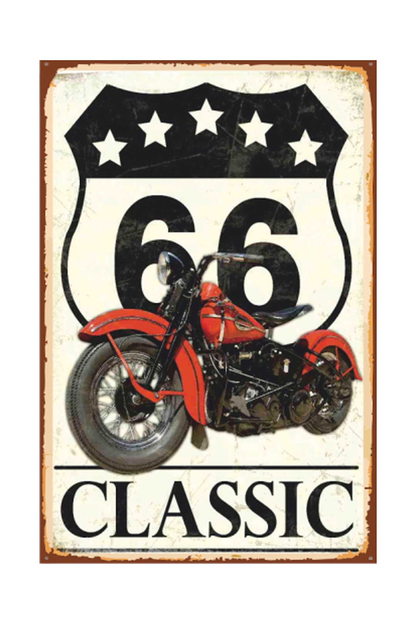 Hayat Poster Route 66 Klasik Motor Retro Vintage Ahşap Poster 2030019