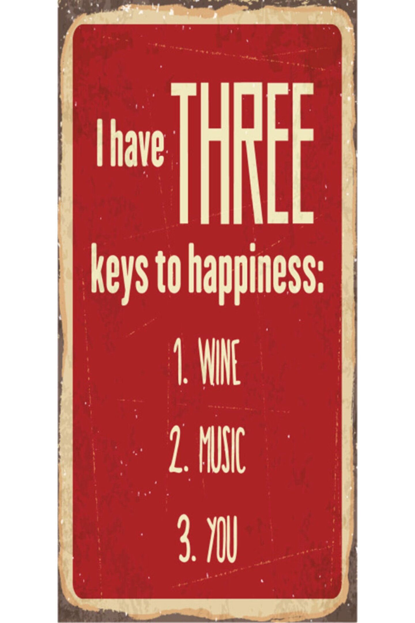 Hayat Poster Şarap Müzik Sen Mini Retro Ahşap Poster