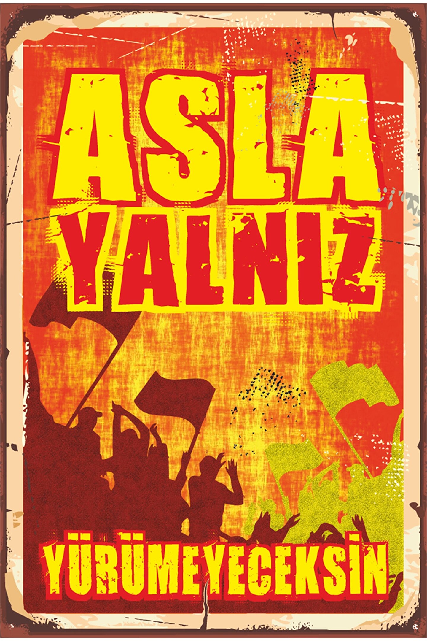 Hayat Poster Sarı Kırmızı Futbol Takım Taraftar Asla Yalnız Yürümeyeceksin Retro Ahşap Poster