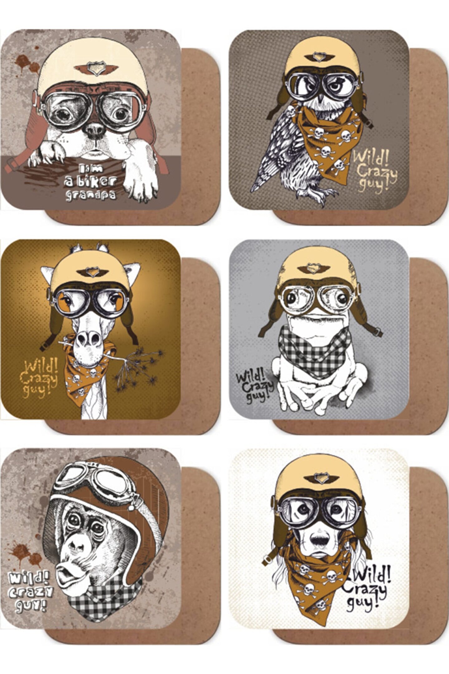 Ahşap malzeme kullanımı sayesinde dayanıklı ve uzun ömürlü bir kullanım sunar; Sevimli hayvan figürleriyle süslenmiş tasarımı, masanızda şık bir görünüm oluşturur; 6 adet bardak altlığı seti, birden fazla bardağı aynı anda koruma altına alır; Motorcu kankalar temalı deseniyle mutfak dekorasyonunuza eğlenceli bir dokunuş ekler;